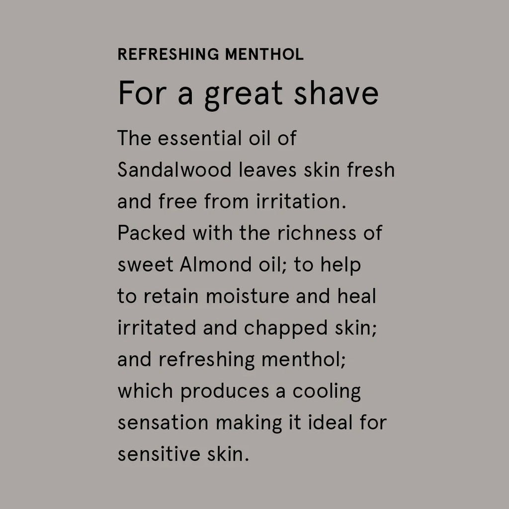 For a great shave, the essential oil of Sandalwood leaves skin fresh and free from irritation.