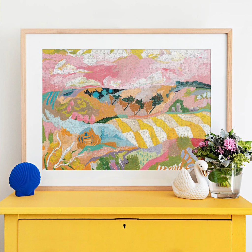 Get ready to exercise your mind and excite your eyes! Introducing the Betty puzzle by Journey of Something! Designed by Robyn Kylie, this beautiful 1000 piece puzzle is named after the artist's grandmother, Betty, and perfectly captures the undulating Australian landscape.