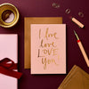 A timeless yet modern, eye-catching greeting card collection. The lettering is original handwriting, printed on a bespoke foil press.