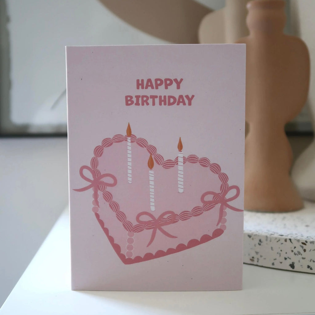 Make their birthday extra special with this cute coquette-inspired card featuring a pink vintage cake. Perfect for a stylish celebration!