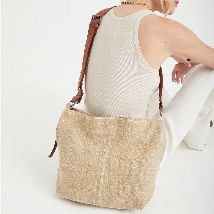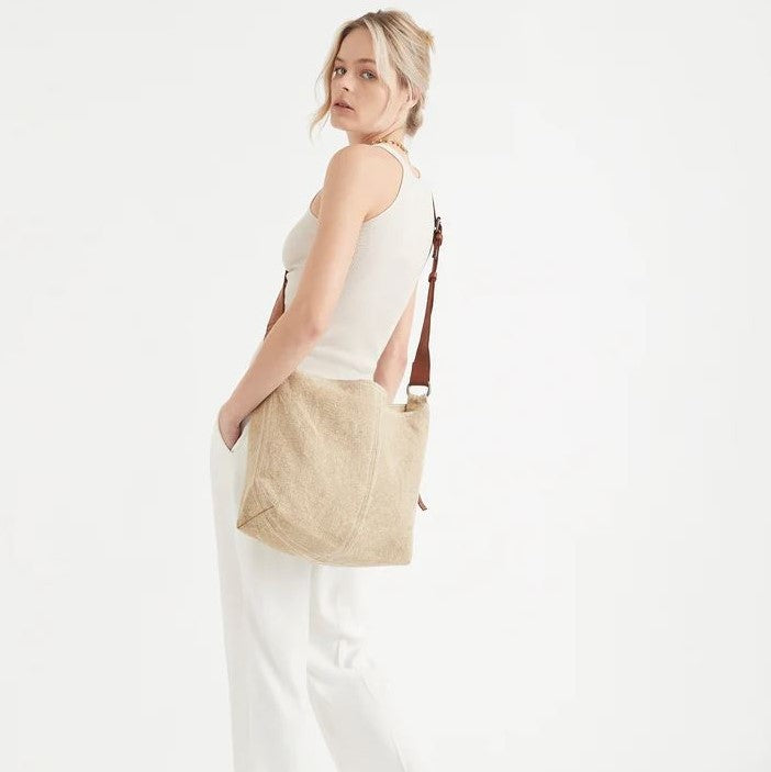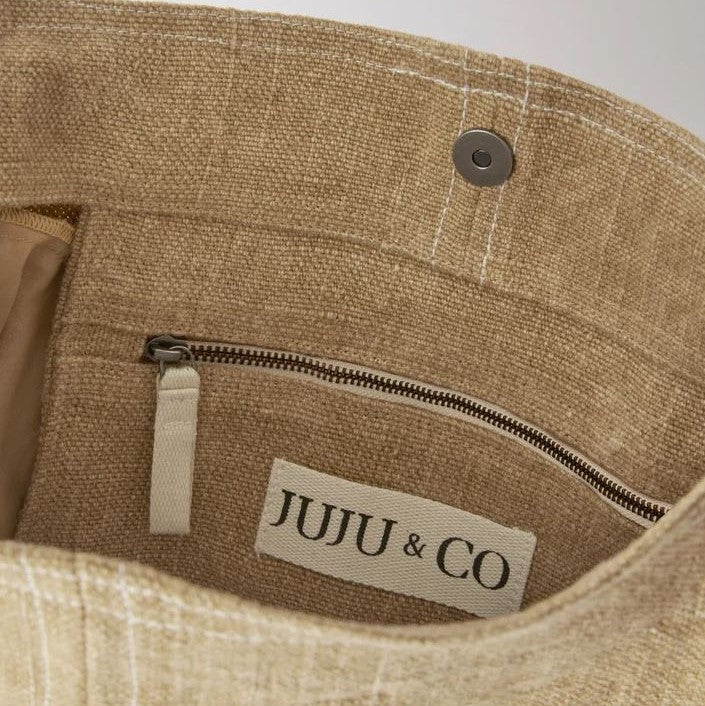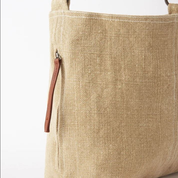 The Baby Jute is the smaller model of our timeless Beach Jute. The lightweight material and wide leather strap allow for constant comfort throughout the day. Though smaller than the Beach, the Baby is spacious enough for any daily essentials, as well as books or a laptop. Adjust the strap to wear as a shoulder bag or crossbody.
