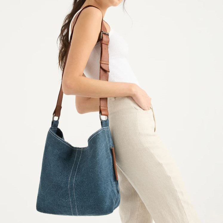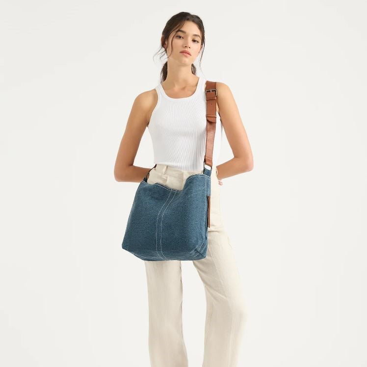 The Baby Jute is the smaller model of our timeless Beach Jute. The lightweight material and wide leather strap allow for constant comfort throughout the day. Though smaller than the Beach, the Baby is spacious enough for any daily essentials, as well asbooks or a laptop. Adjust the strap to wear as a shoulder bag or crossbody.