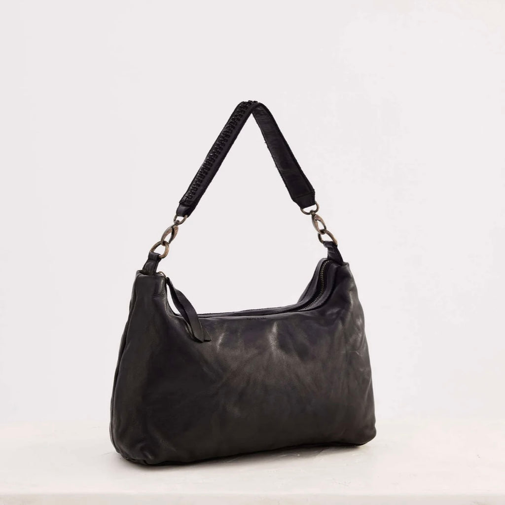 The Signature Slouchy is a shoulder bag made from washed leather. This large shoulder bag is elevated with a braid detail short strap.