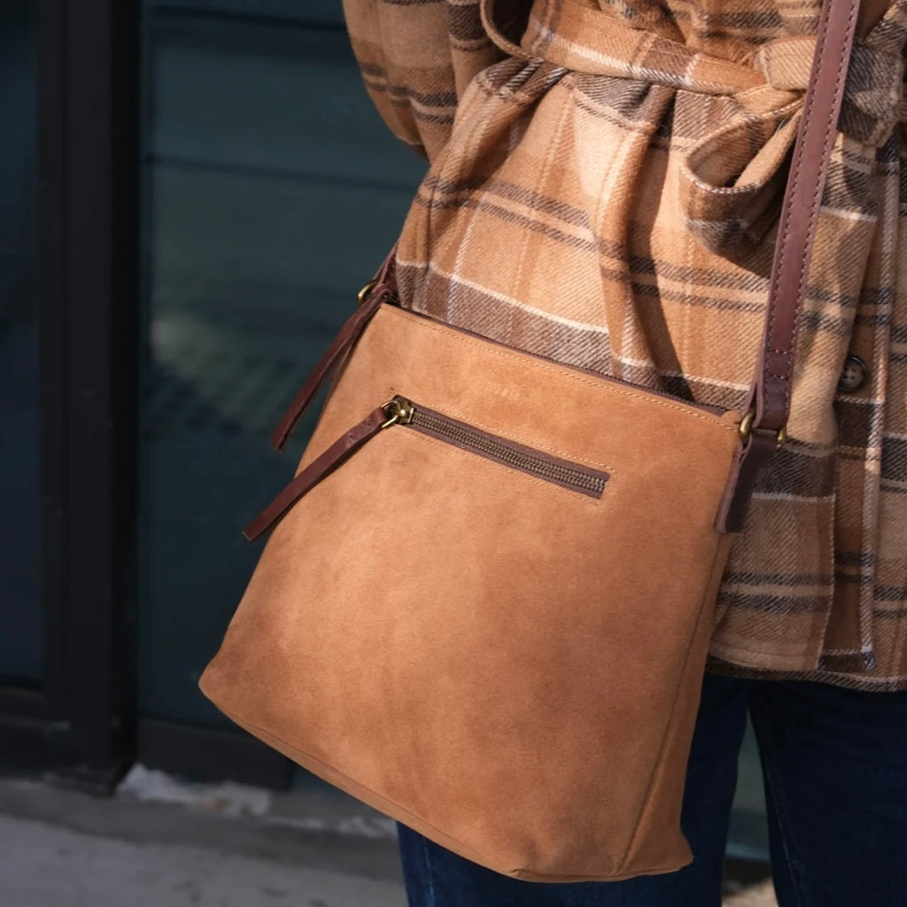 The Suede Essential is a medium size crossbody bag made from water-repellent suede. This crossbody has a generous capacity, perfect for everyday wear. Premium vegetable tanned leather straps and trims complete this staple accessory.