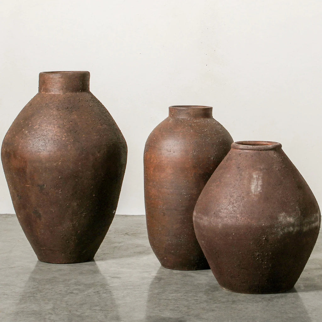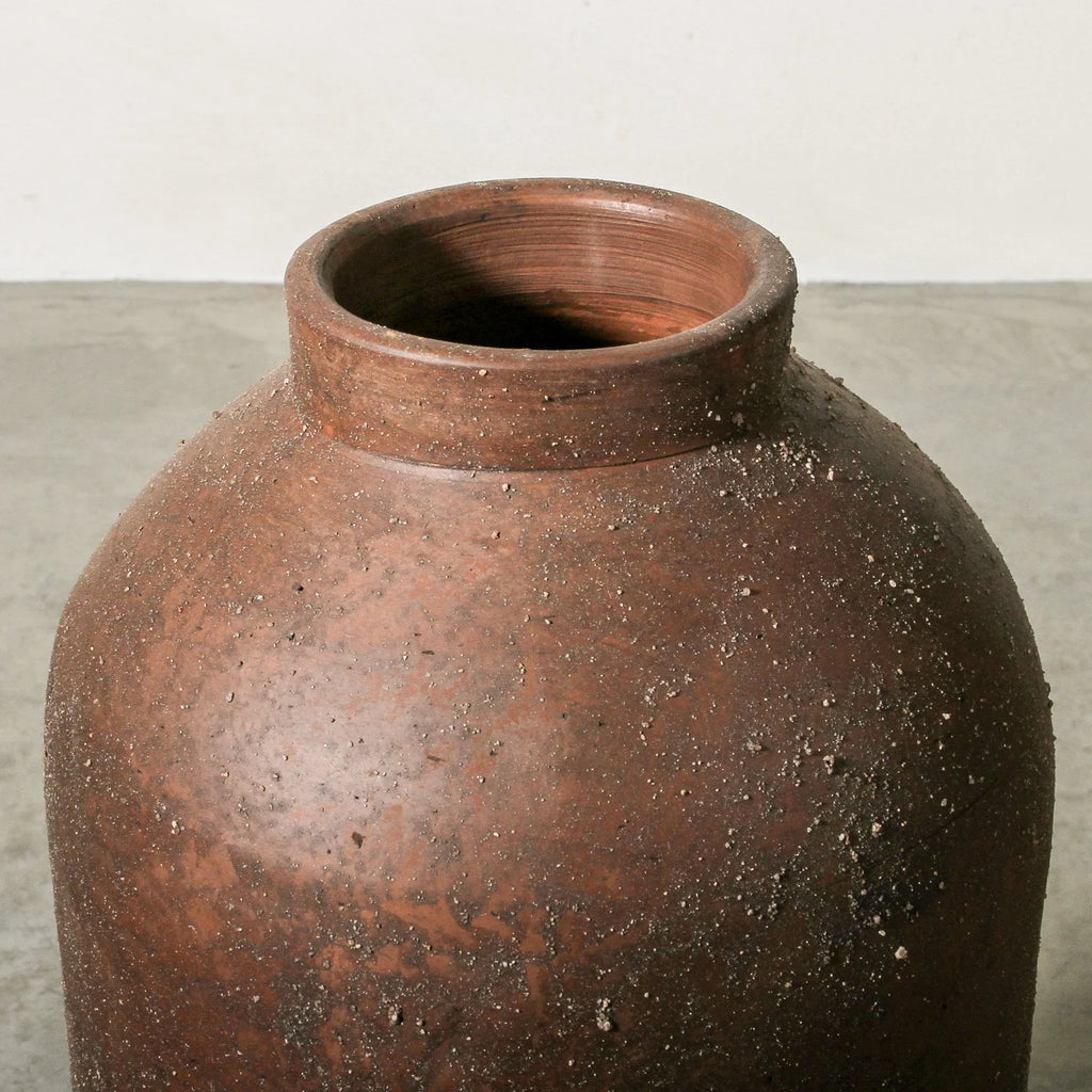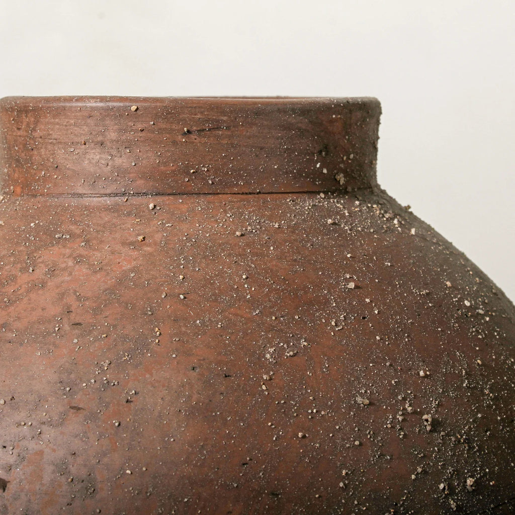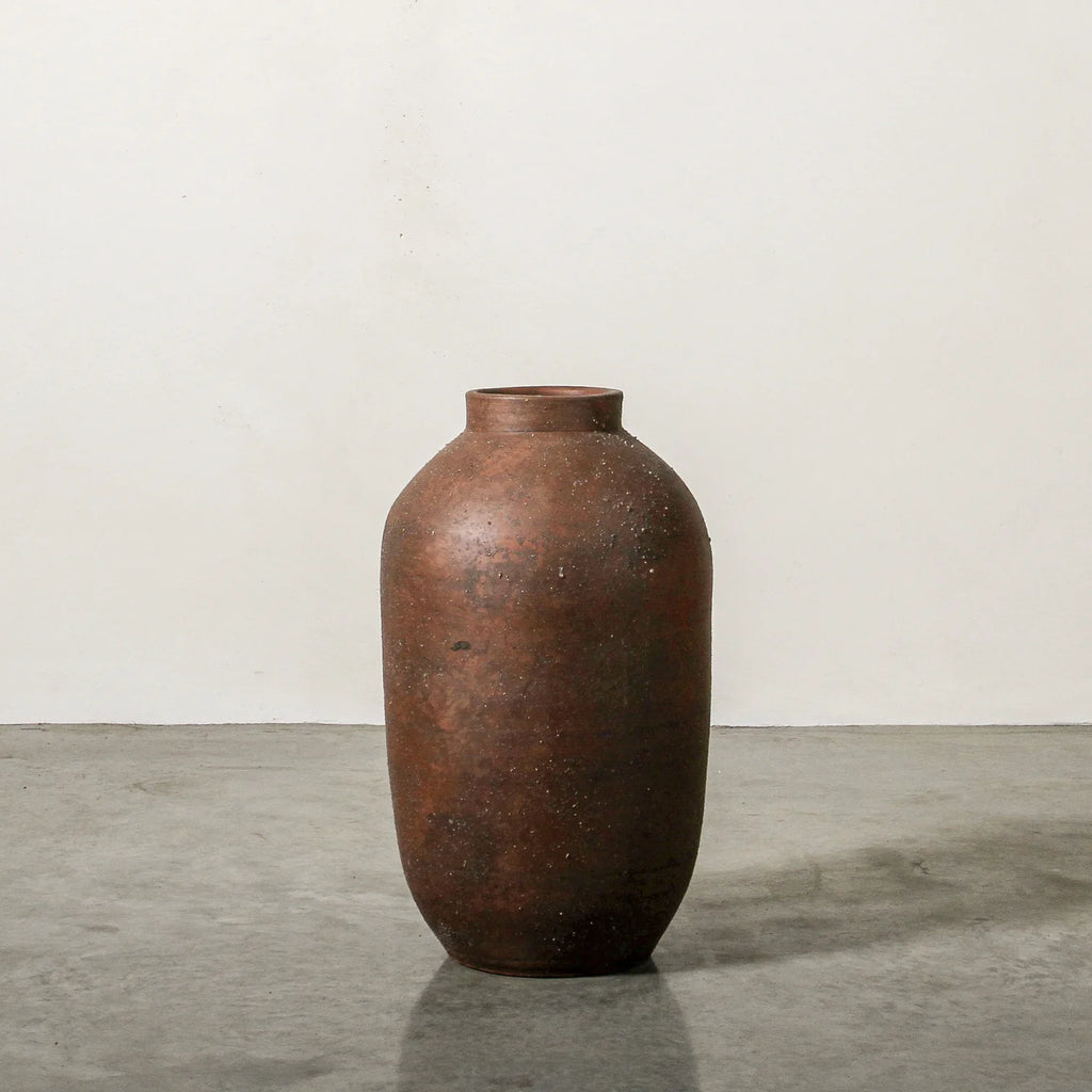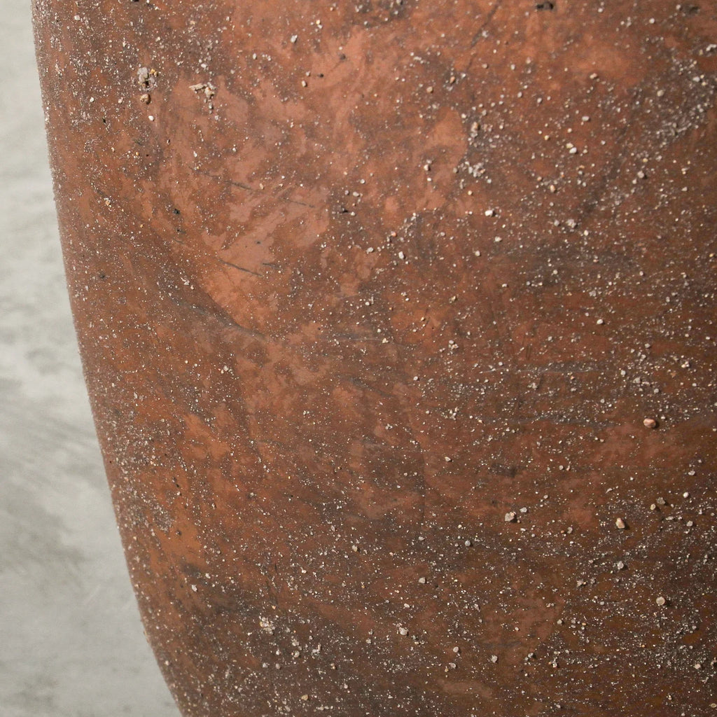 Elevate your interior with the Arwa Pot, a grand-sized vessel inspired by classic ancient forms and finished in a rustic brown. This pot is made of terracotta and boasts an organic, elongated form with subtle textures, adding depth and interest to its appearance.