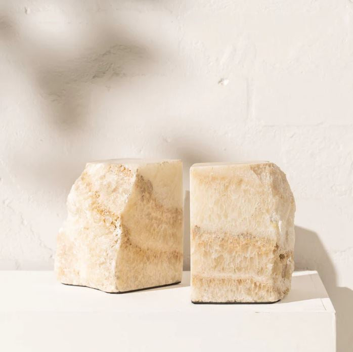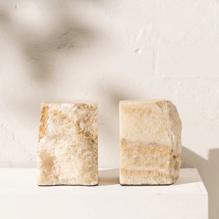 These beautiful solid onyx bookends are made using natural stone. Each item is unique with different colouring and natural patterning. Onyx may contain small cracks, holes and pits that are characteristic of this authentic product.