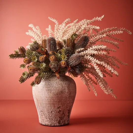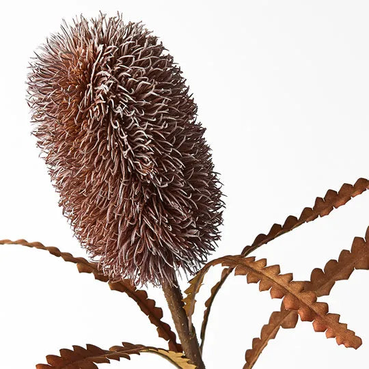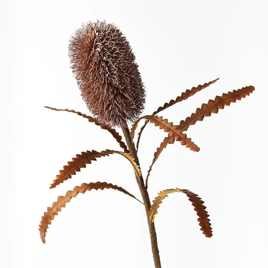 Bring warmth and vibrancy to your interior space with this realistic banksia serrata stem in coffee. Create a one of a kind artificial arrangement mixing our highly detailed banksia serrata with other faux stems from our amazing native collection. With minimal maintenance this artificial stem can offer lasting beauty, keep out of direct sunlight.