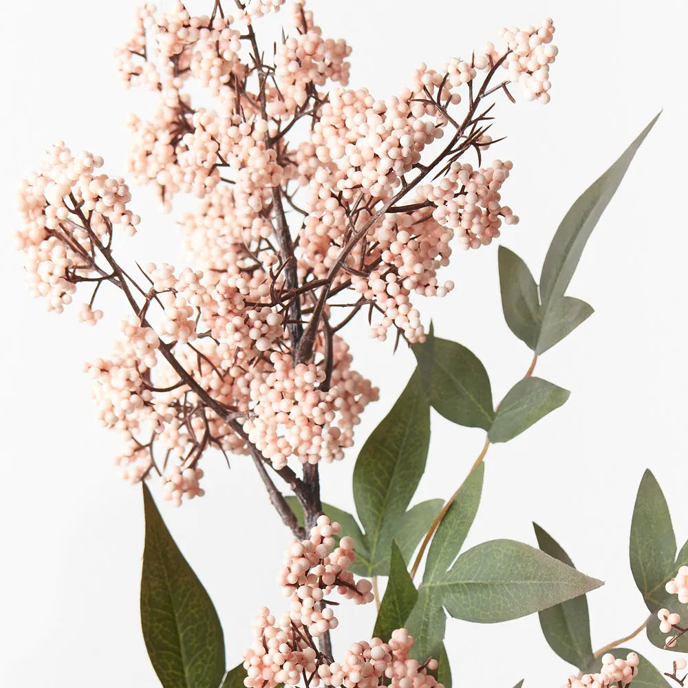 Bring the garden indoors with this stunning artificial pepper berry spray, unbelievably realistic it will feel like you have just been to the market and picked a fresh bunch. Easily maintained this beautiful faux berry spray will bring lasting beauty into your home. Create a one of a kind artificial arrangement mixing with other stems or place in one of our decorative vases on its own. For longer lasting, keep out of direct sunlight.
