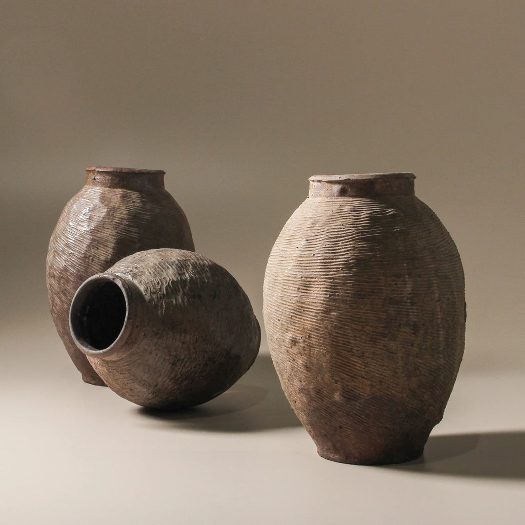 Sourced from vintage collections in Yunnan, the pot celebrates the enduring beauty of traditional materials and artisanal techniques. Its tactile texture and historical significance make it a distinctive addition to any interior. Style it as a decorative centrepiece, repurpose it as a vase for foliage and botanicals, or display it alongside other curated objects to add depth and contrast. This vintage wine pot bridges functionality and design, bringing a touch of Yunnan's cultural legacy into modern spaces with its unique character and cohesive presence.