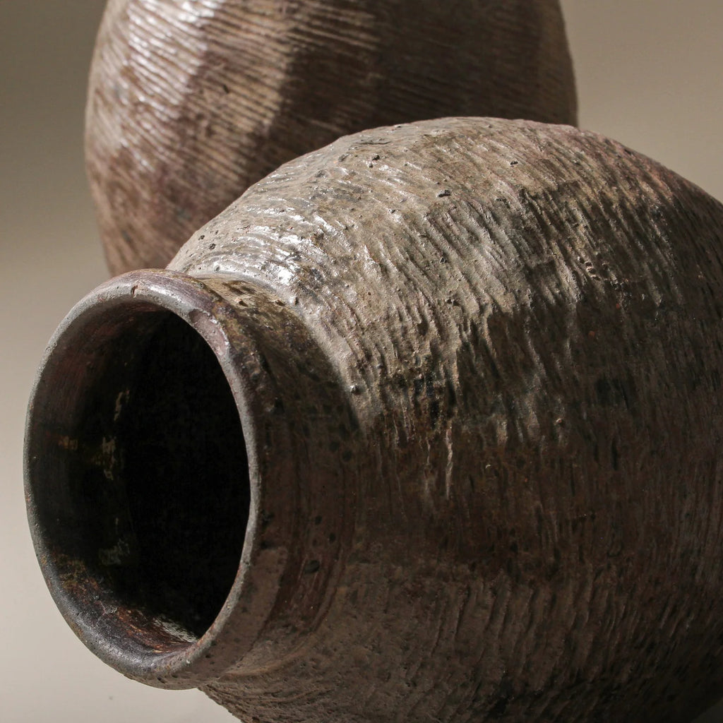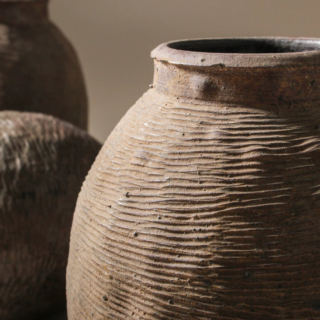 Originating from Yunnan and aged 60-80 years, our Chinese Vintage Wine Pot reflects the region's rich heritage through its rustic, textured finish and earthy deep brown tones. Once used for storing wine, this pot carries the marks of time, with its surface revealing rough and weathered detailing that speaks to its practical origins and craftsmanship.