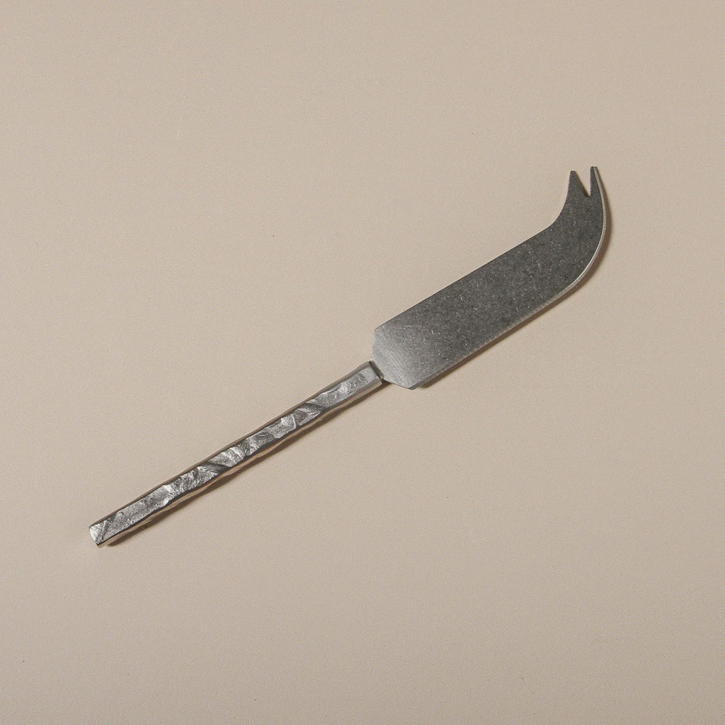 A fusion of raw texture and clean lines, the Etcher Cheese Knife is crafted from matte Stainless Steel with a sculpted, hammered-like handle that enhances grip and visual interest. The organic surface detail softens the structured shape, creating a subtle contrast that feels both grounded and intentional. Whether serving aged gouda or creamy brie, this knife adds depth to any cheese presentation while maintaining a streamlined, modern aesthetic.