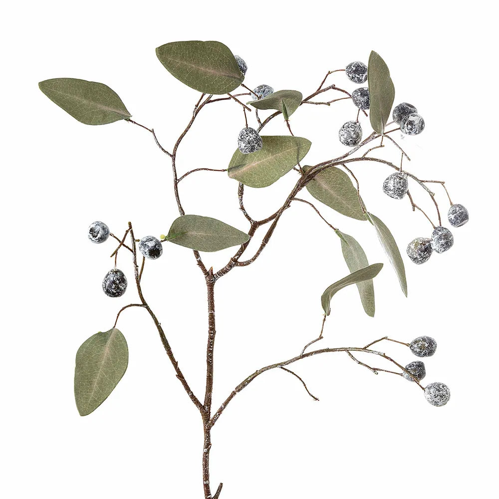 Add a playful pop of nature to your decor with our artificial Eucalyptus and Berries Spray. Featuring soft green leaves and dark berries on slender branching stems, this whimsical spray brings a touch of the outdoors inside. With advanced technology ensuring lifelike realism, you'll forget they're not the real deal. They're long-lasting, hypoallergenic, and low maintenance, no need to worry about wilting or unpleasant odors. Simply dust with a static feather duster to keep them looking fresh and fabulous. Whether adorning a vase on your dining table, adding flair to a wreath, or sprucing up your office space, this spray is sure to charm all who behold it.