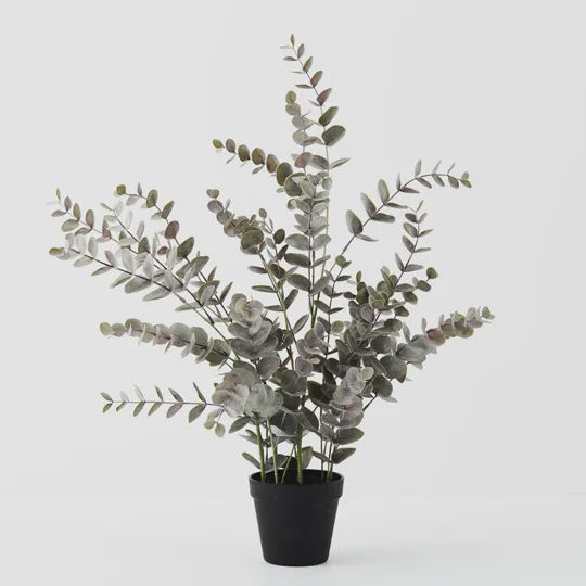 The Eucalyptus Bush arrives in a sleek black plastic pot, offering the beauty of nature with minimal upkeep. Perfect for busy individuals, its artificial foliage requires little maintenance, providing everlasting greenery and ambiance without the hassle of watering or pruning.
