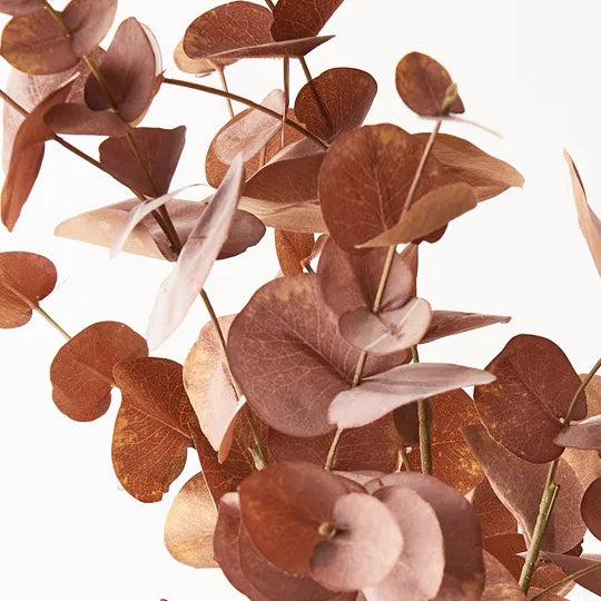 The artificial natives in the floral interiors range are amazingly life-like. The fine details, textures and colours of the eucalyptus silver dollar bush in rust are amazing, so true to life that it is difficult to note the difference. The faux eucalyptus silver dollar bush can easily be styled in a vase on its own or mixed with other artificial stems from our extensive range of natives. You can enjoy long lasting beauty with minimal maintenance be sure to keep out of direct sunlight.