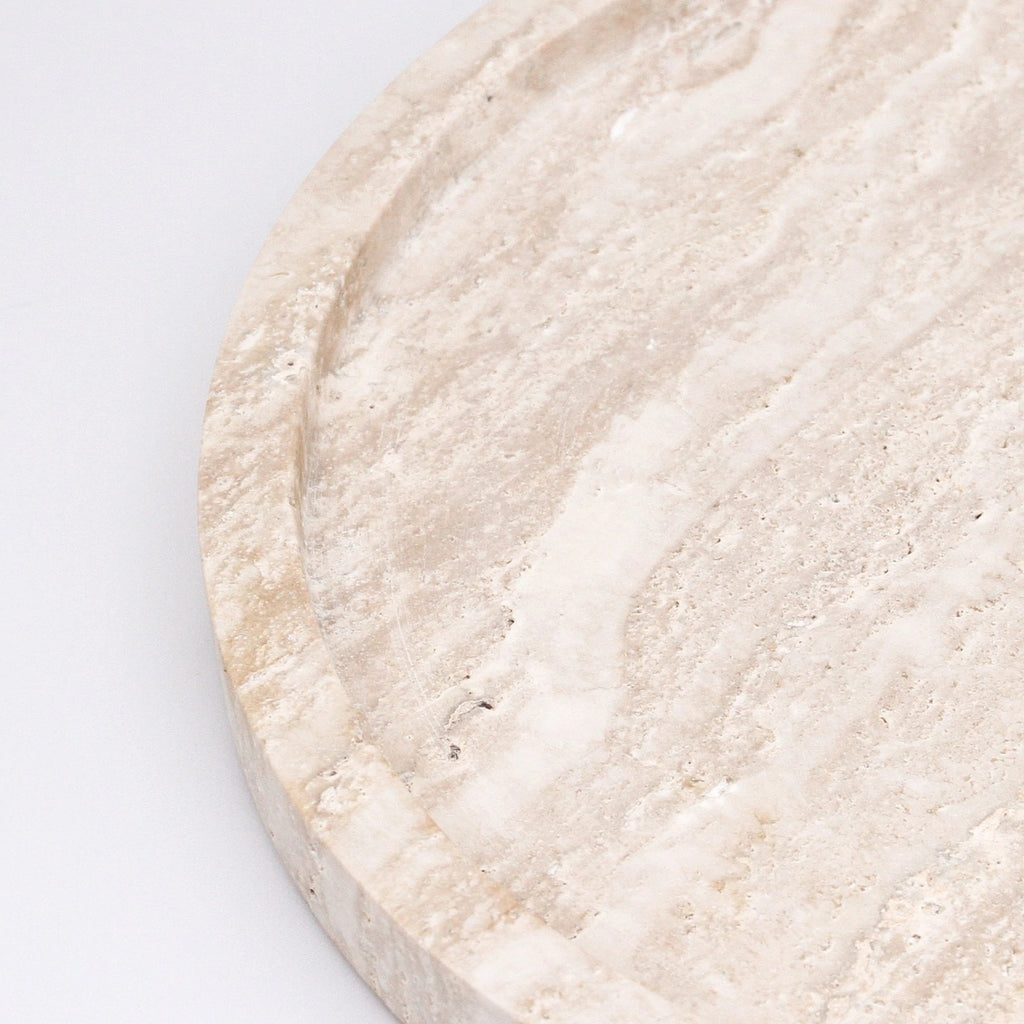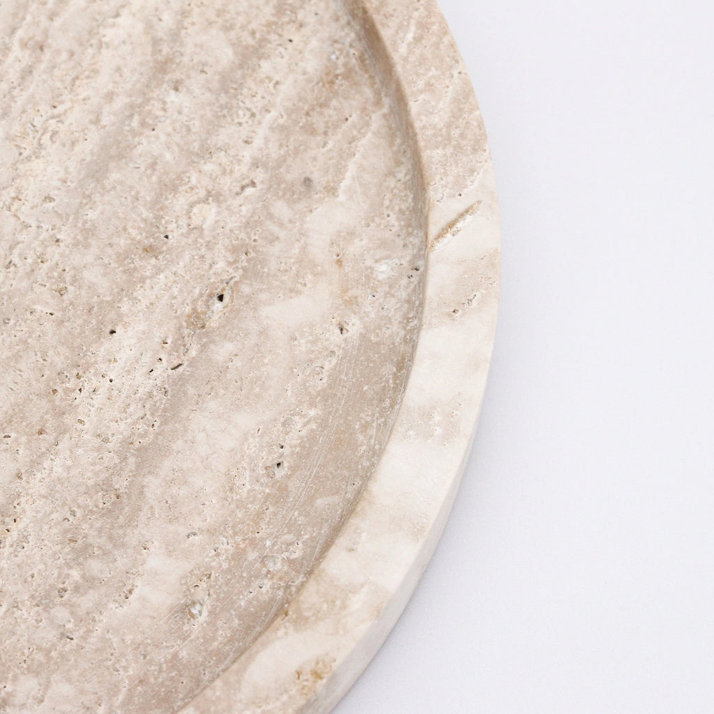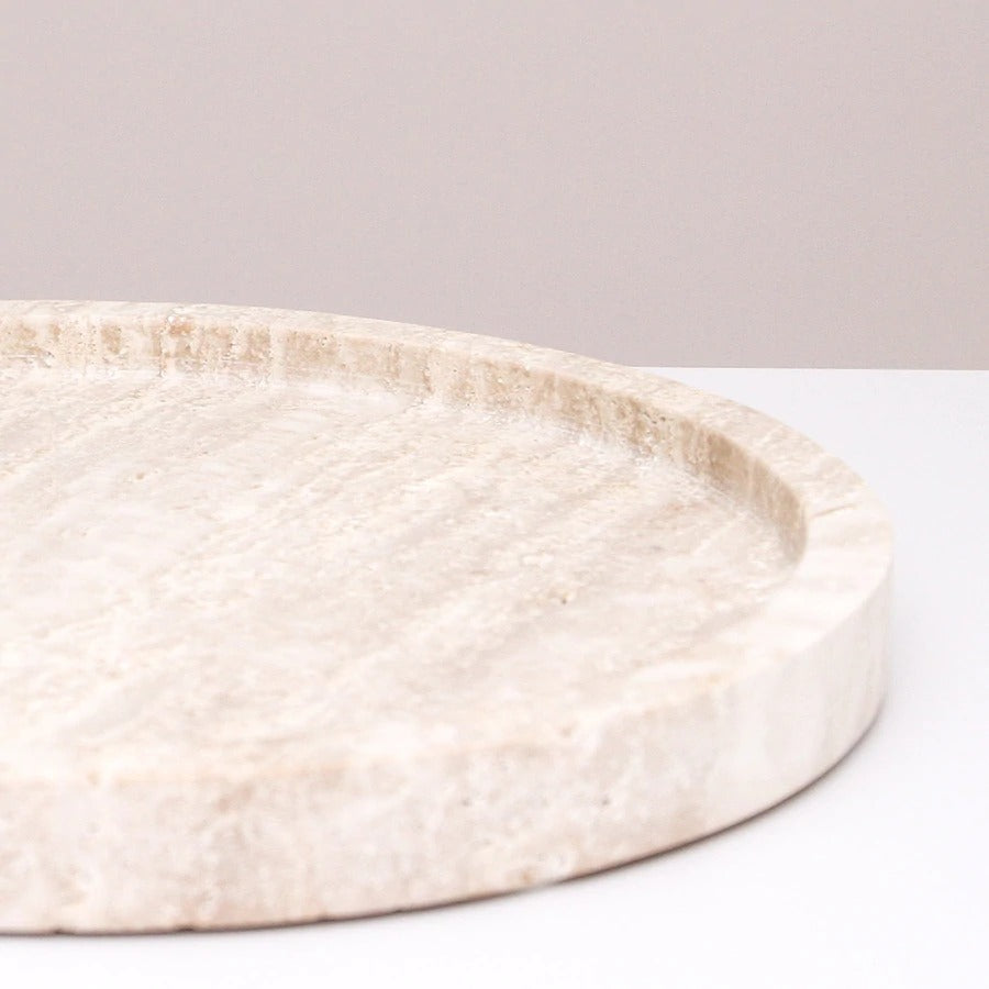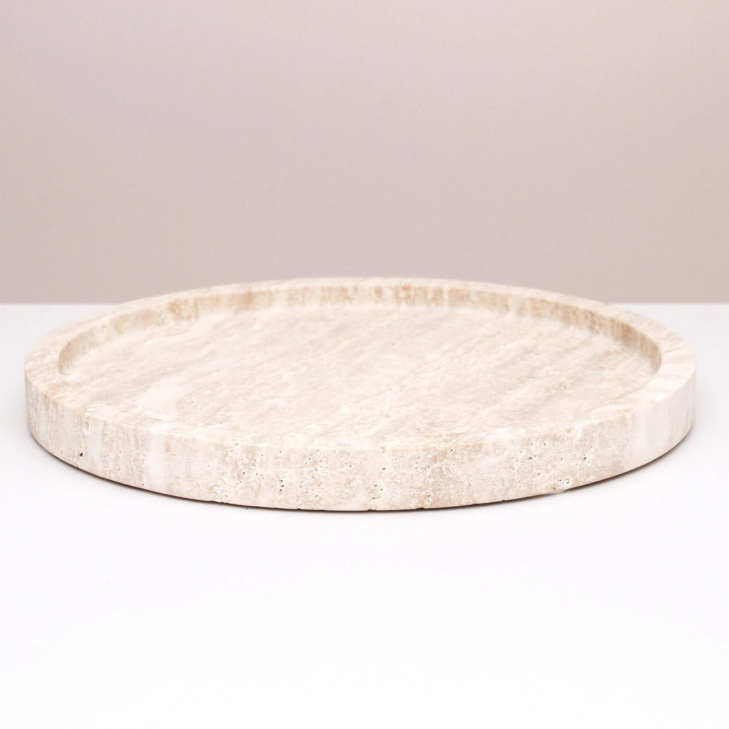 Crafted from solid natural travertine, this beautiful round tray is perfect when used as a catch-all atop your bedroom dresser for jewellery and bottles of perfume, or as a display tray in your bathroom for hand soaps and scented candles. No two Nile trays are alike, as each shows unique tones, textures and patterns in the stone’s surface, and this is exactly why we love them.