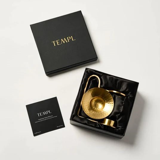 TEMPL brass oil burner is handcrafted from 100% brass. Its unique, minimalistic design is reminiscent of ancient Temple oil lamps used for ceremonies & rituals.