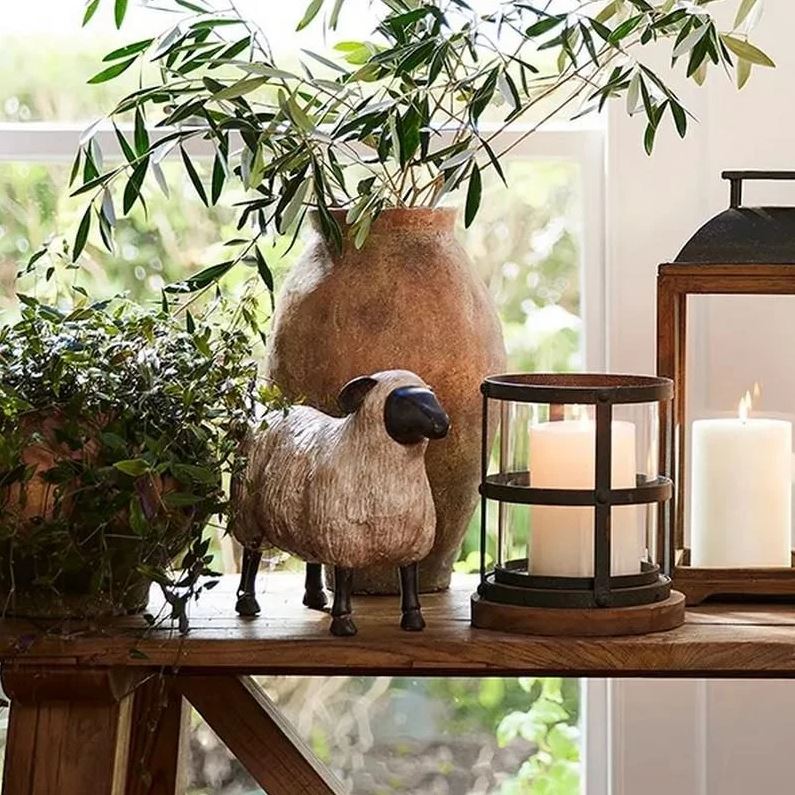 Sheep décor adds charm and character to shelving or outdoor spaces.Composition: ResinCare Instructions: Wipe with soft dry cloth. This item can be used outdoors - finish will age over time.Dimensions: 31cmLx13cmWx24cmH