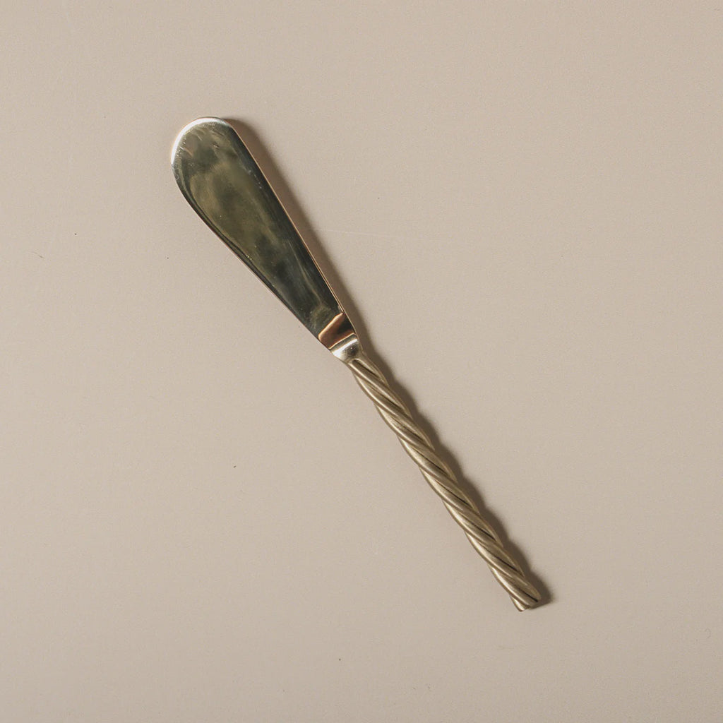 The Spindle Spread Knife merges form and function with its delicately twisted, rope-like handle and champagne-coloured finish. This subtle textural detail enhances grip while adding a sculptural element to the piece, making it both a practical and curated addition to a well-styled table. As part of the Sense of Reality collection, it reflects the narrative of tactile engagement and visual harmony, creating a sensory connection between object and user. Ideal for serving butter, pâté, or soft cheeses, the Spindle Spread Knife brings a refined yet organic detail to contemporary dining.