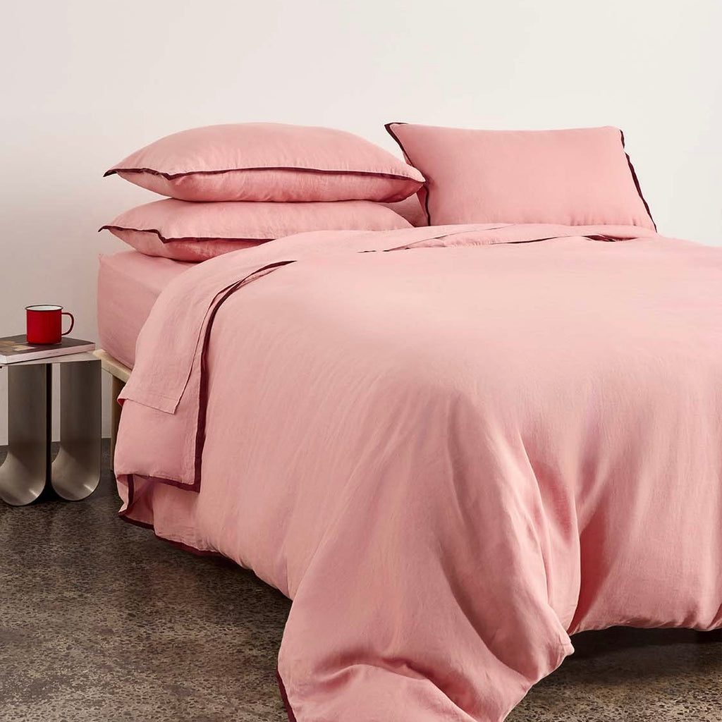 Available in six modern colourways with complementary quilt covers and pillowcases finished with a contrast trim, each linen piece is OEKO-TEX® STANDARD 100 certified, inviting you to transform your space.