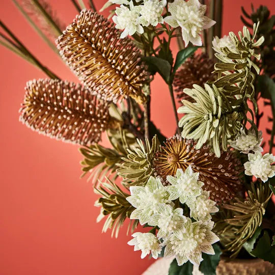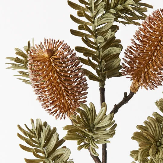 Discover the diverse range and exceptional quality of Floral Interiors artificial natives. Combine this impressive banksia spray with a huge variety of artificial foliage to design your own amazing artificial floral displays. Easily maintained this gorgeous faux banksia spray in coffee will bring lasting beauty into your home. For longer lasting artificial stems keep out of direct sunlight.