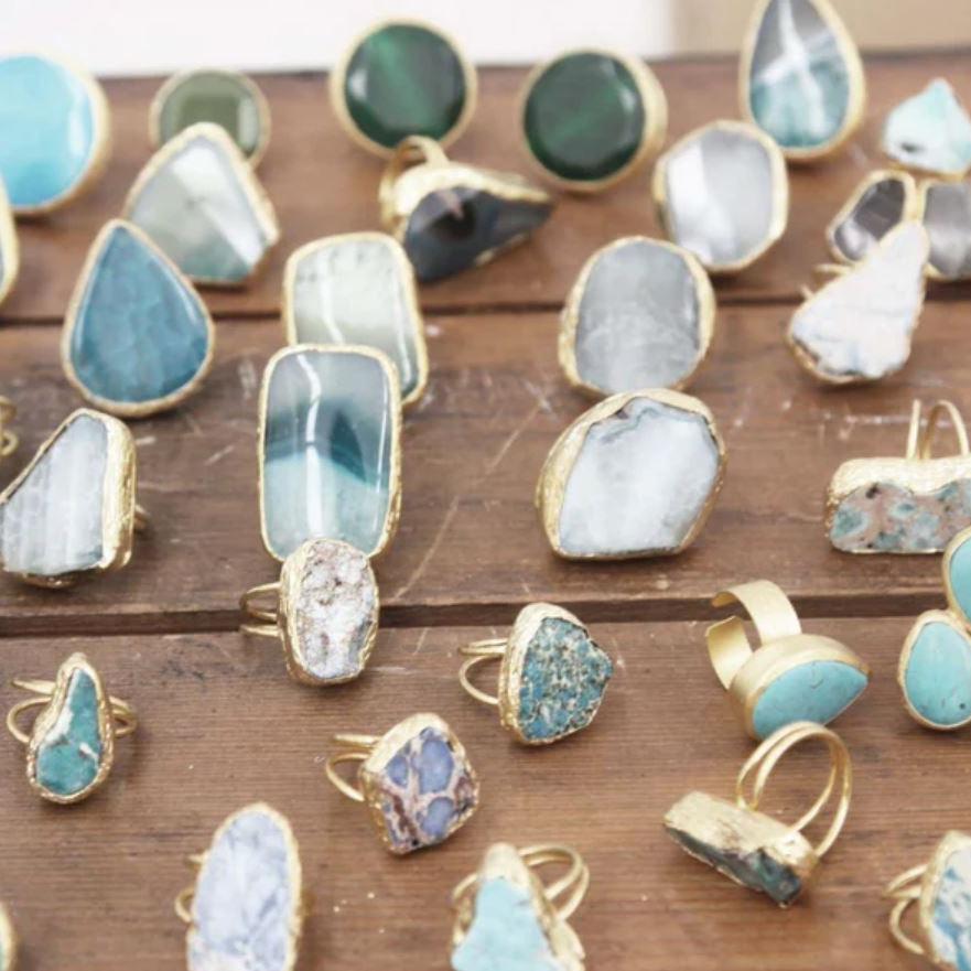 Designed in Australia and handcrafted in Turkey. Each piece has an 18k gold plating with a brass base & is crafted around the shape of the individual stone. The natural beauty reflects in the colour and form of each piece with a play on colour and texture. Please note the handmade nature and natural materials of our jewellery means that each piece will be unique.