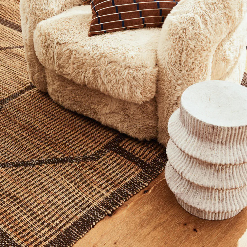 Our Kalindri rugs design was inspired by tribal geometric patterns. Handcrafted with precision from a blend of jute and cotton, the Kalindri rugs embody artisanal excellence and bring a touch of global charm to your space.