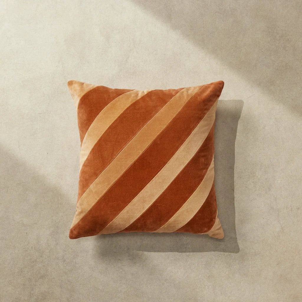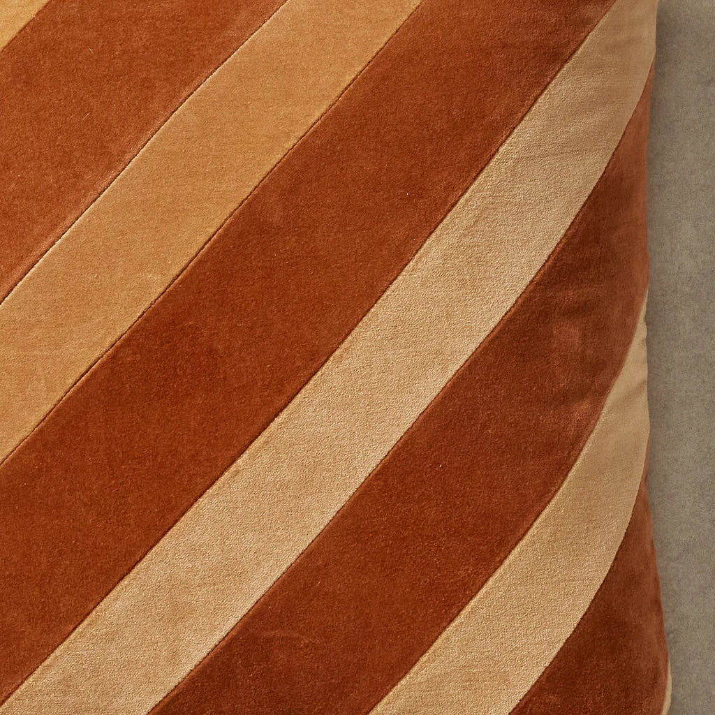 Styling Tip: Enhance your decor by placing the Milly Cushion on a vintage-inspired armchair or a sleek modern sofa. Elevate your home with the plush allure of velvet and the nostalgic charm of diagonal stripes, creating a harmonious blend of modern sophistication and echoes of bygone elegance.