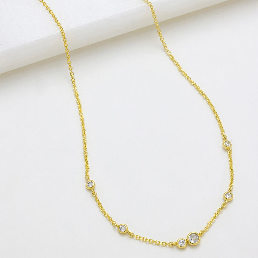 The Amy Mini Necklace in gold/clear offers delicate sparkle in a refined design. A perfect layering piece that adds a subtle shimmer to your look.