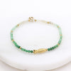 Featuring semi-precious olive green stones, this gold plated bracelet is a chic and earthy addition.