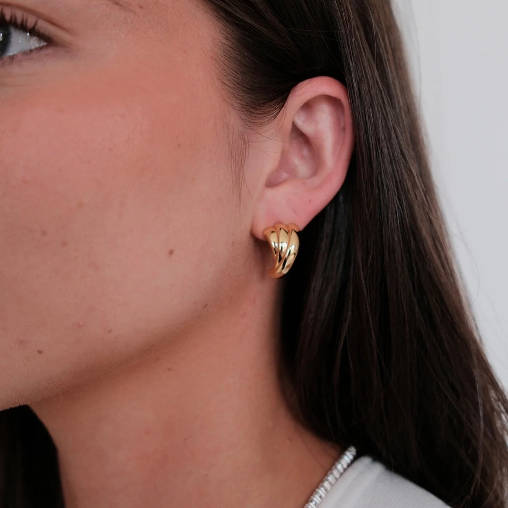 The Romy Hoop is a beautifully unique design, featuring a delicate fan-line pattern that adds texture and dimension. With its modern silhouette and detailed finish, this hoop is the perfect statement piece for everyday styling or elevated occasions.