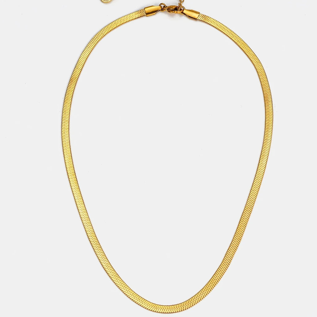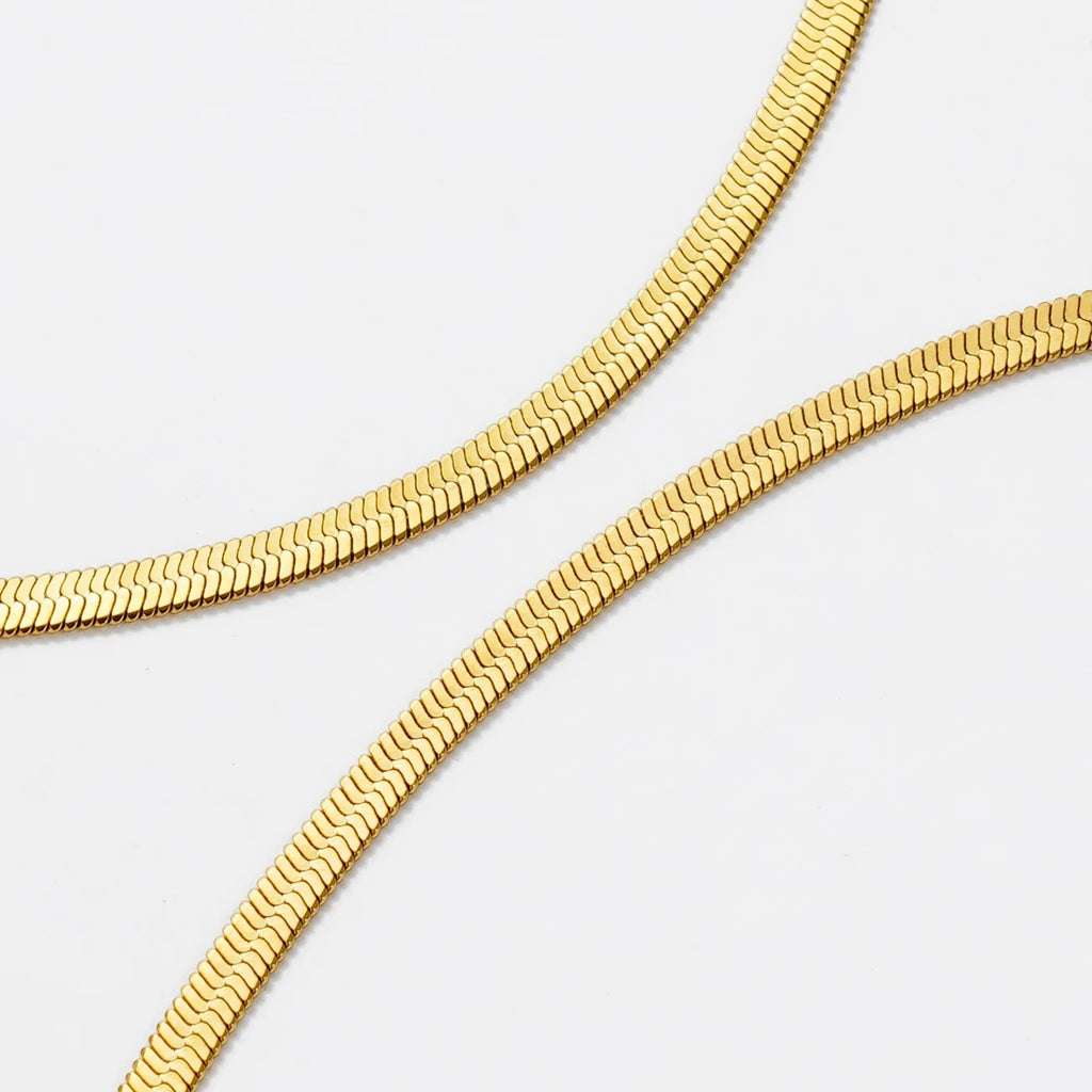 The timeless design of the snake chain allows for easy layering with other necklaces or wearing it as a standalone piece for a classic and sophisticated statement. Embrace the allure of the Snake Chain Necklace and let it become a symbol of your understated yet elegant style.