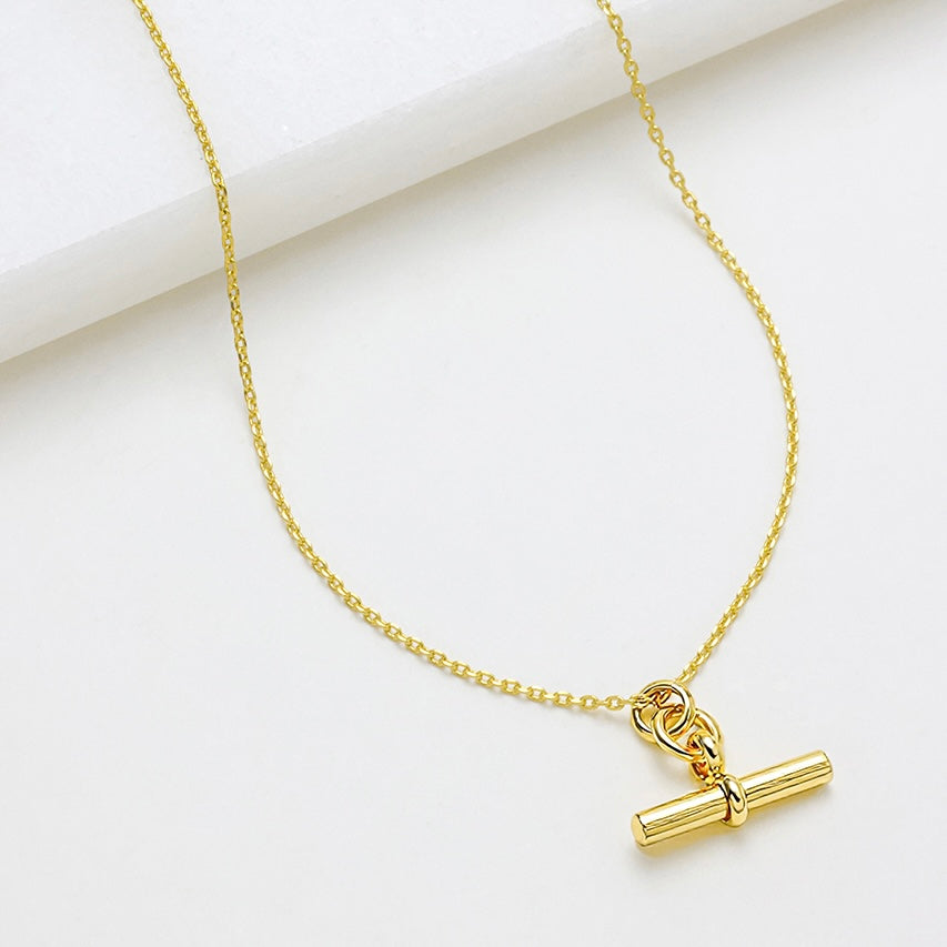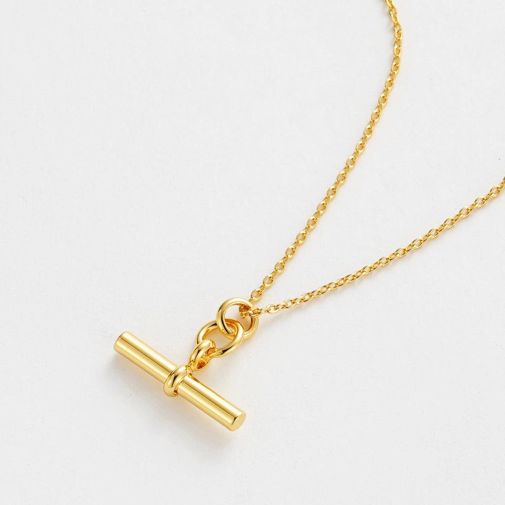 The Winnie Mini Necklace in gold features a sleek bar pendant for a minimalist look. A versatile necklace that makes layering modern and chic.