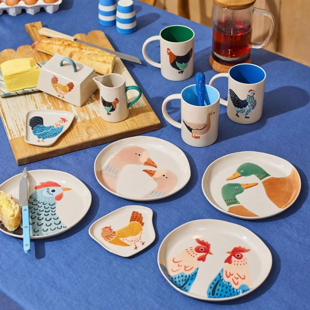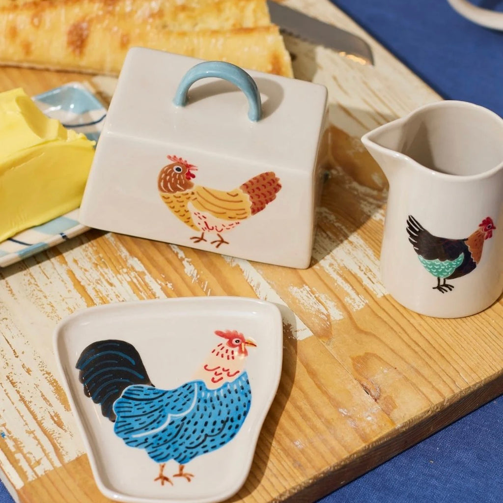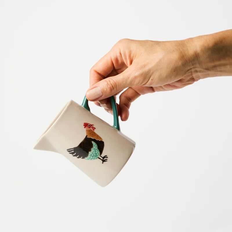 Adorned with a hand-painted rooster in earthy hues, this earthenware milk jug features a distinctive green handle for character and function. Our Sydney-designed Clover Milk Jug transforms everyday pouring into an occasion, each piece individually painted by Vietnamese artisans who honour their craft heritage.