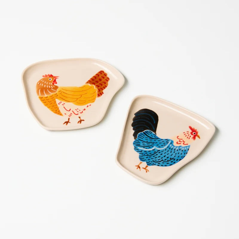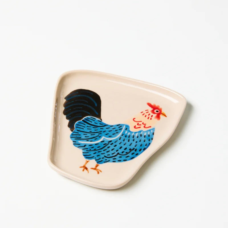 A blue-feathered rooster struts across this distinctively shaped plate, perfect for holding your teabag after dunking or as a catchall dish. The Wonky Barn Blue Plate embraces organic forms through earthenware craftsmanship, combining our Sydney design sensibility with the hand-painting expertise of Vietnamese artisans.