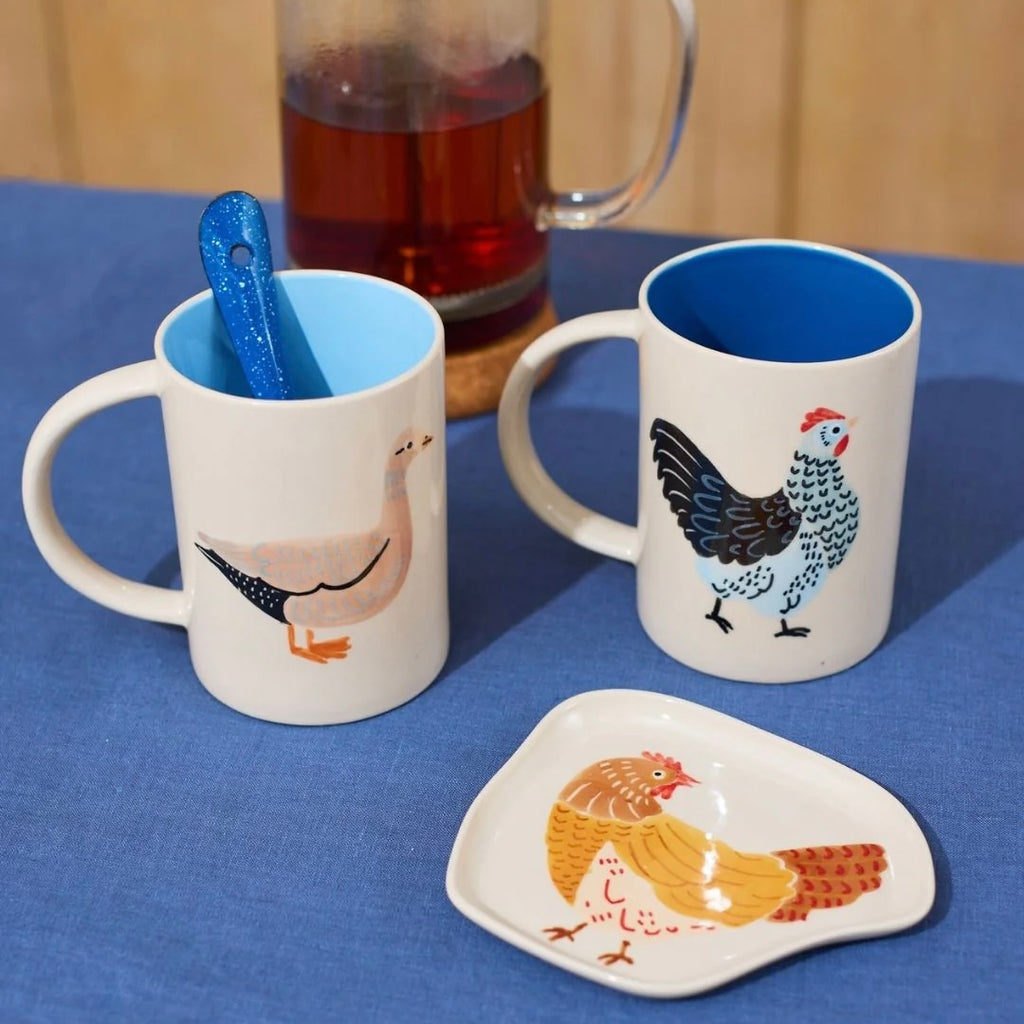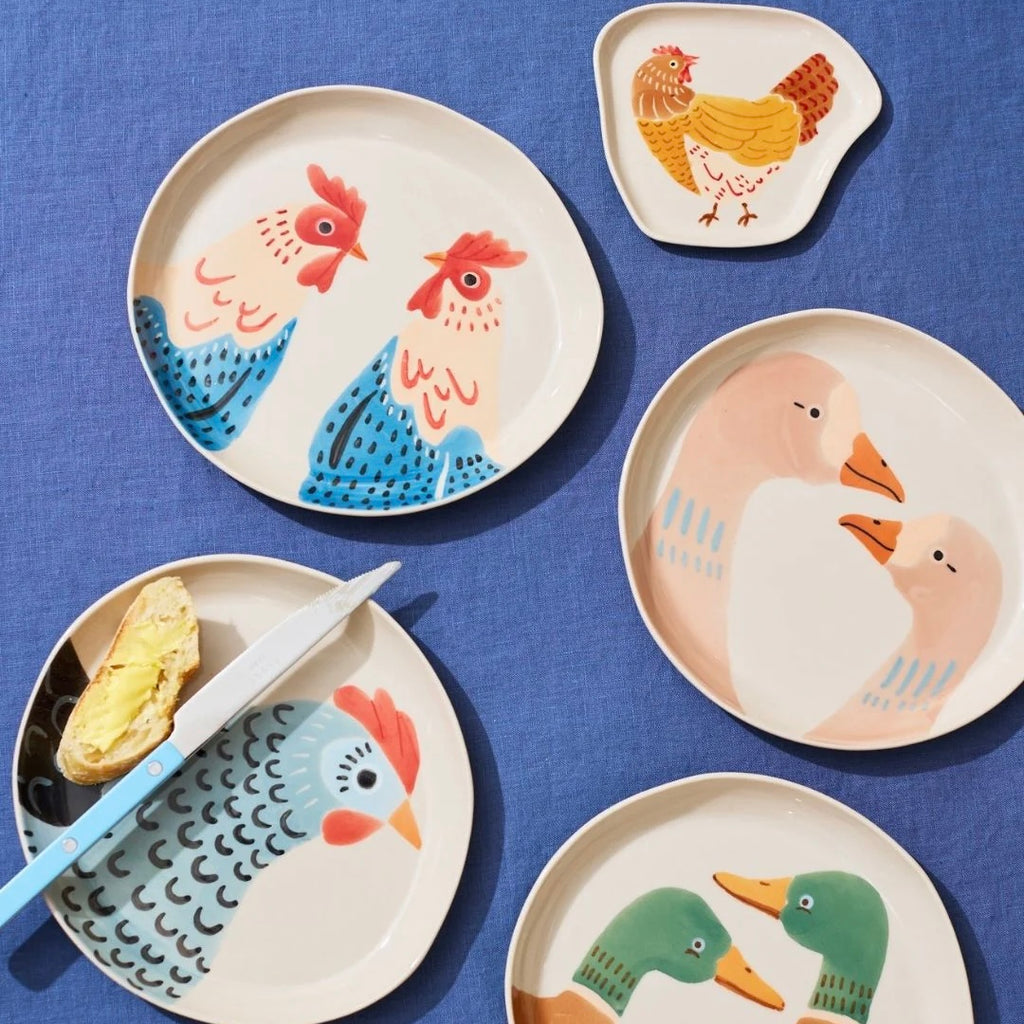 This uniquely shaped plate features a golden hen illustrated with artisanal care on premium earthenware. Each Wonky Toffee Plate celebrates the beauty of imperfection, showcasing the hand-painting skills of our Vietnamese craftspeople interpreting our Sydney studio's farmhouse-inspired designs.