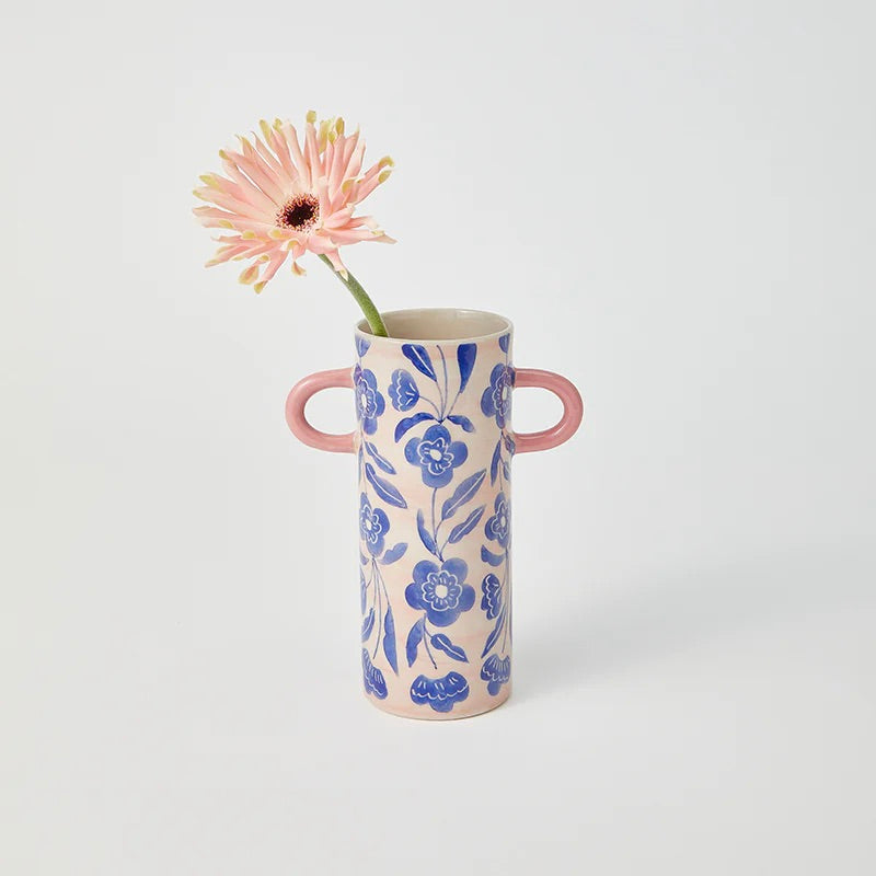 Introducing our Griffe Vase Collection. Each vase in this series features unique designs, including hand-painted florals, bold stripes, or vibrant multi-coloured spots. The name "Griffe," German for handles, reflects the dynamic silhouette of these vases, with two solid handles on either side adding an extra design punch! Whether displayed individually or paired together, these vases are perfect for creating a playful vignette on your bookcase, mantel, or shelf, adding a pop of colour and personality to any surface in the house.