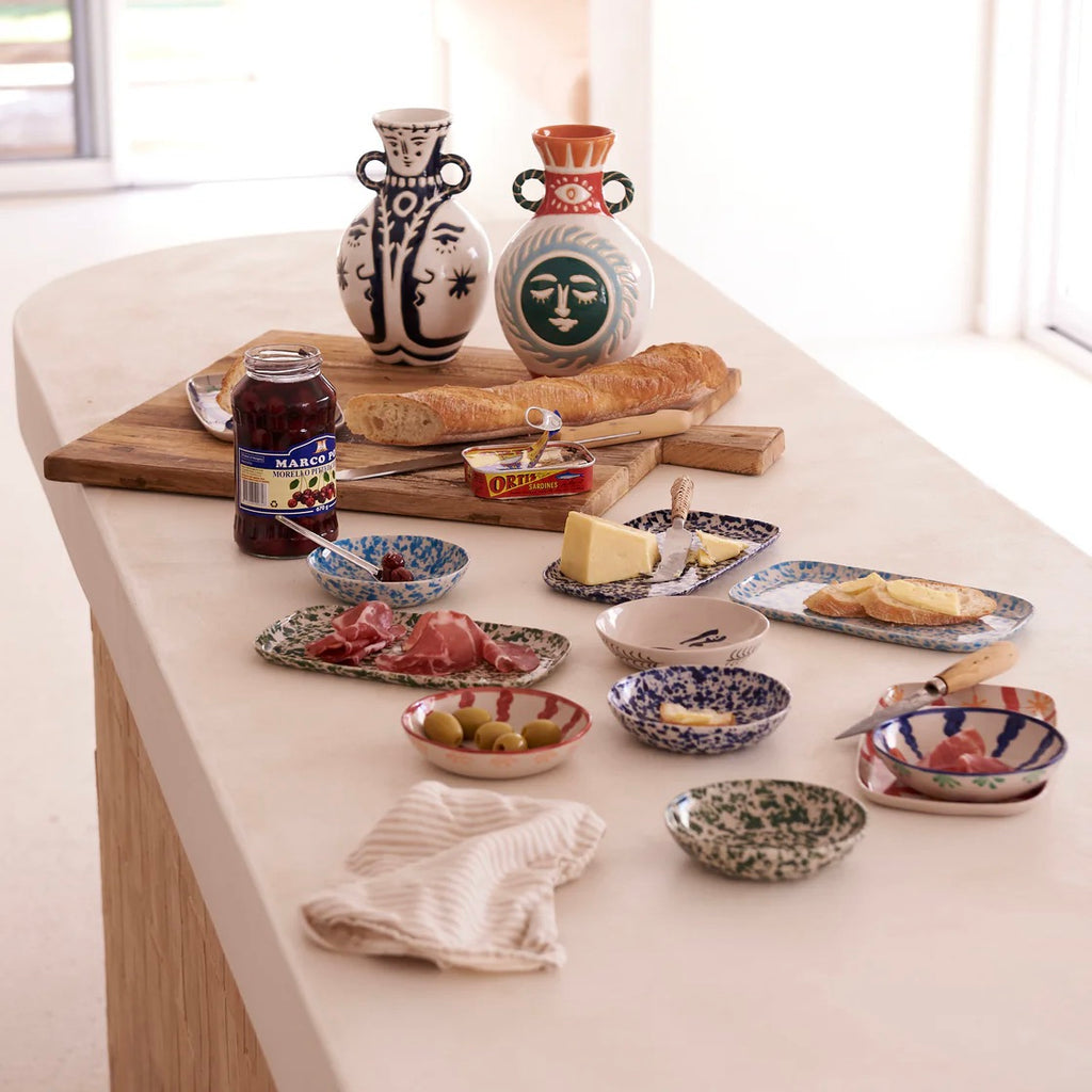 Introducing our Pinchos Collection – a versatile series of bowls and trays designed for mixing and matching, just as the name suggests in Italian! From whimsical loosey-goosey faces and squiggles to vibrant Puglian-inspired splatters and tablecloth checks, each piece in this collection adds a playful tone to any space. Use them to serve snacks and treats on the table or as trinket and catchall trays for jewellery and treasures on the bedside or dresser. With Pinchos, the possibilities are endless for creating a fun and eclectic mix-and-match style in your home.