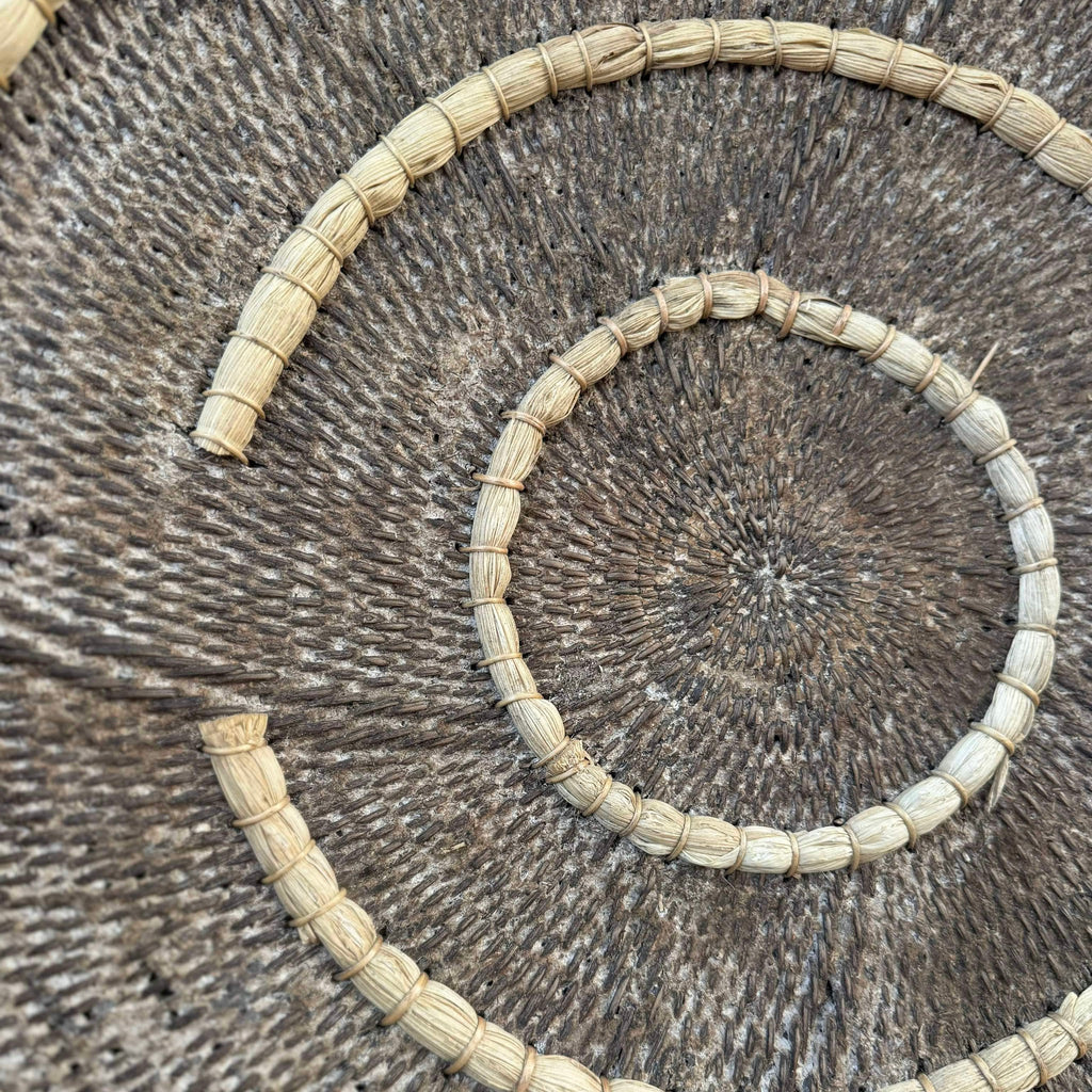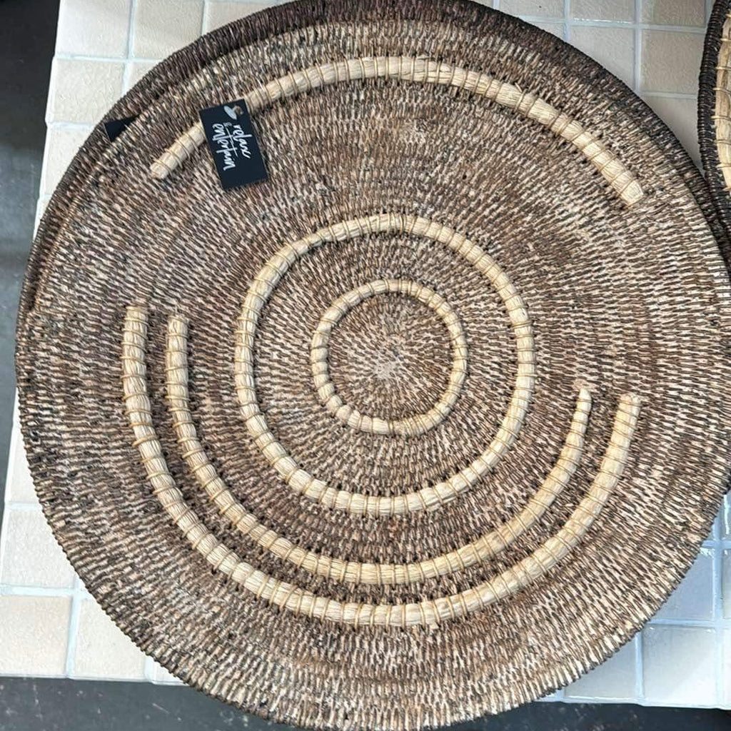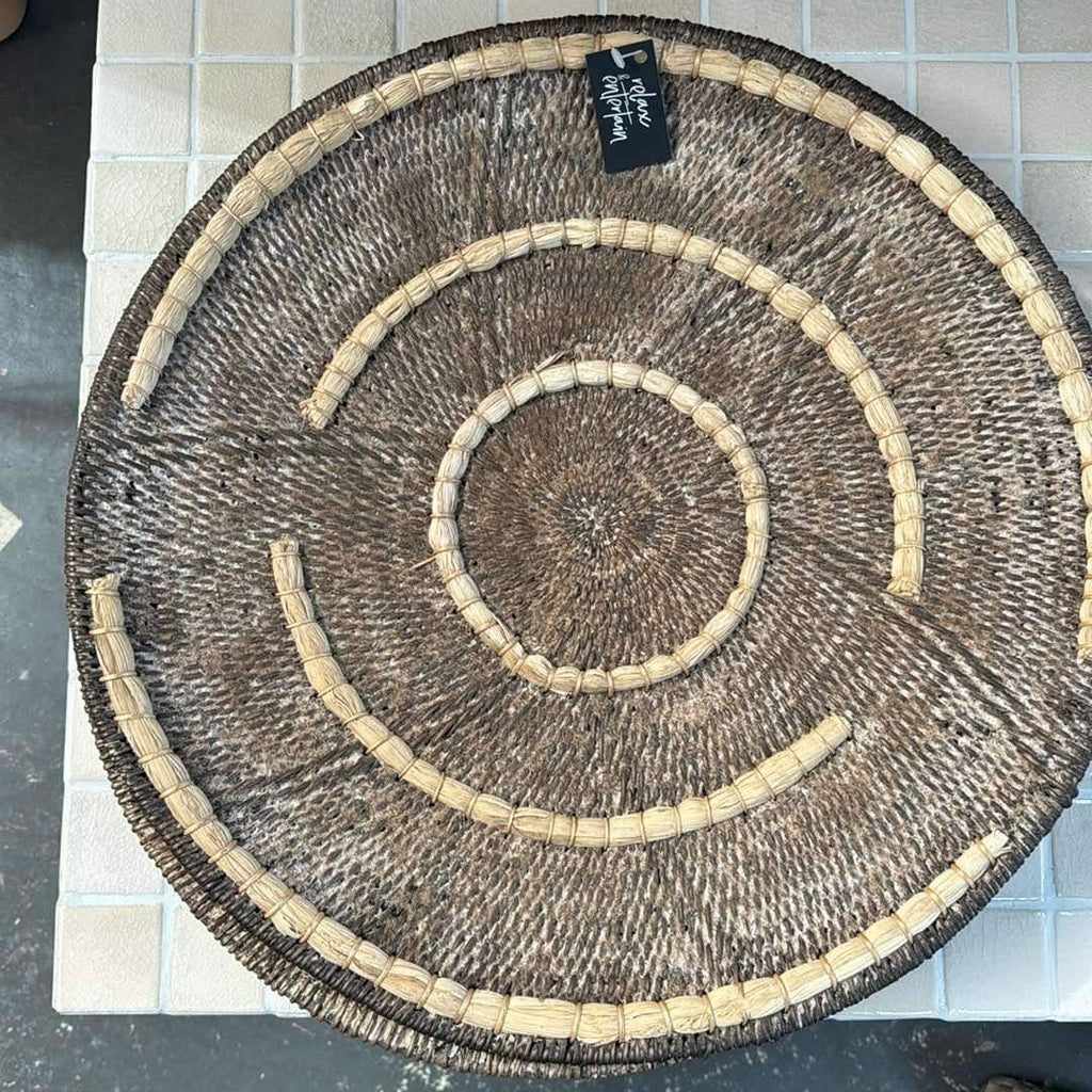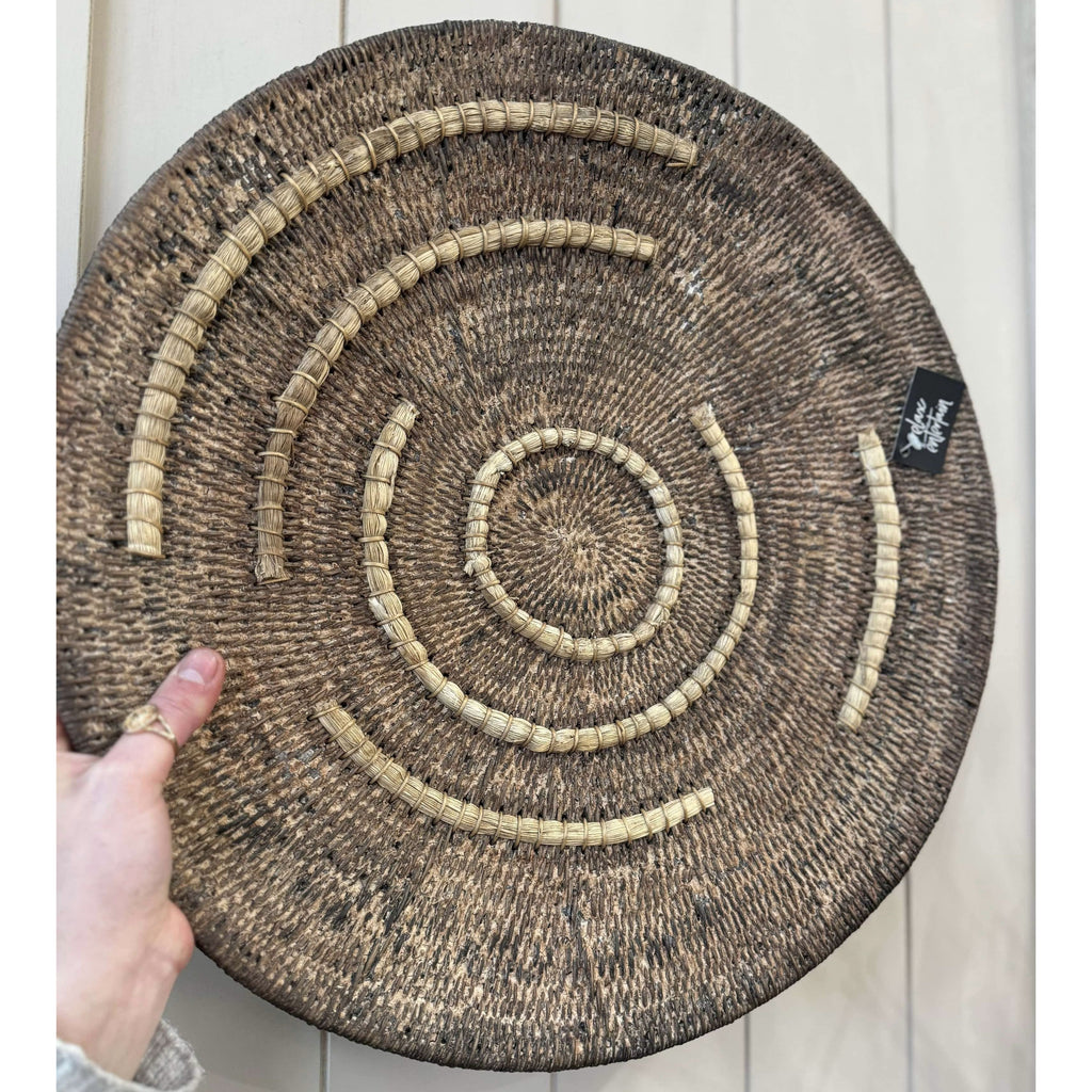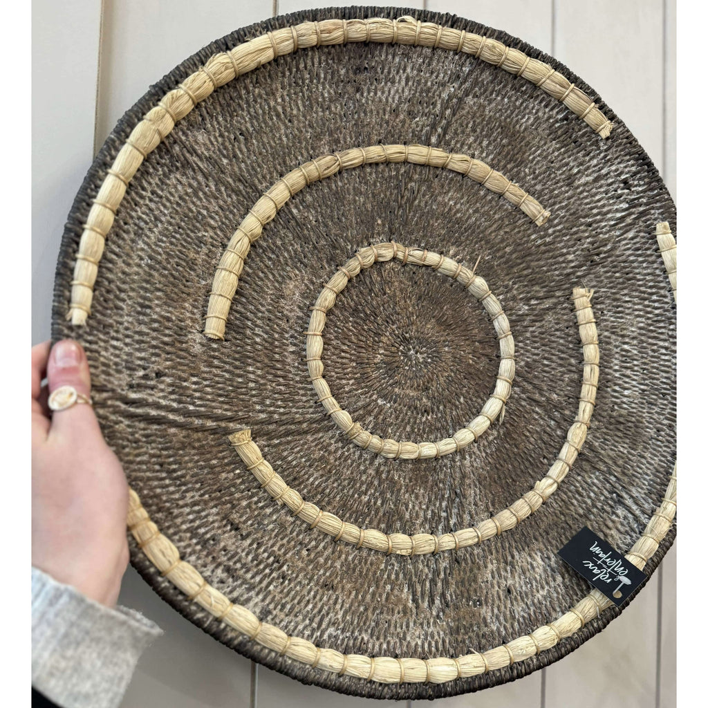 Story behind the product ~ A century old and traditional technique of craftsmanship, vintage Makenge Baskets were handmade by highly skilled women artisans using fibres of the makenge bush root. The root was boiled at high temperatures to soften the fibres which was then dyed using natural plant ingredients to provide functional weaving fibres. Today Old Makenge baskets are near impossible to find as many villagers no longer make them due to the intricate and time consuming process.