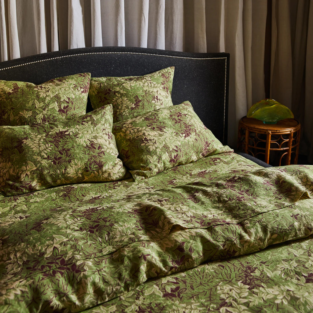 "The muted botanicals of our Alka sheets add a timeless charm to your space. Not unlike the elegant blooms of vintage wallpapers worn over time on the walls of an Edwardian home, Alka evokes a feeling of deep nostalgia". – Phoebe’s Style Notes