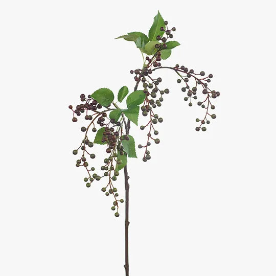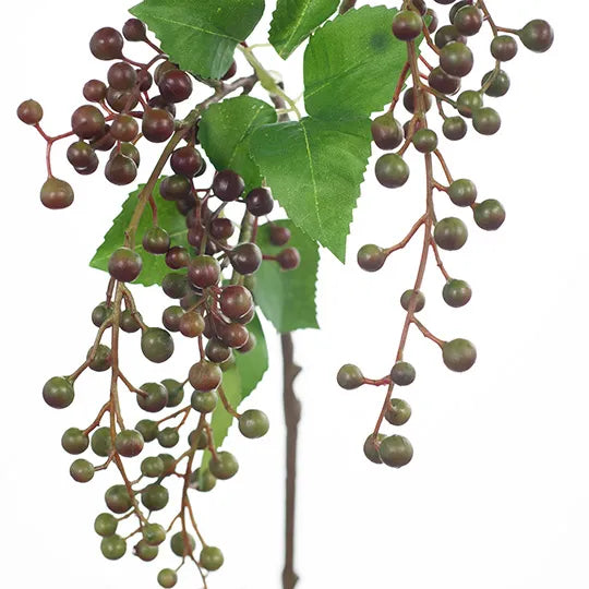 Bring the garden indoors with this striking artificial berry leaf spray, unbelievably realistic it will feel like you have just been to the market and picked a fresh bunch. Easily maintained this beautiful faux berry leaf spray will bring lasting beauty into your home. Create a one of a kind artificial arrangement mixing with other stems or place in a decorative vase on its own. For longer lasting faux leaf sprays keep out of direct sunlight.