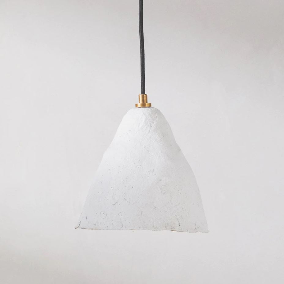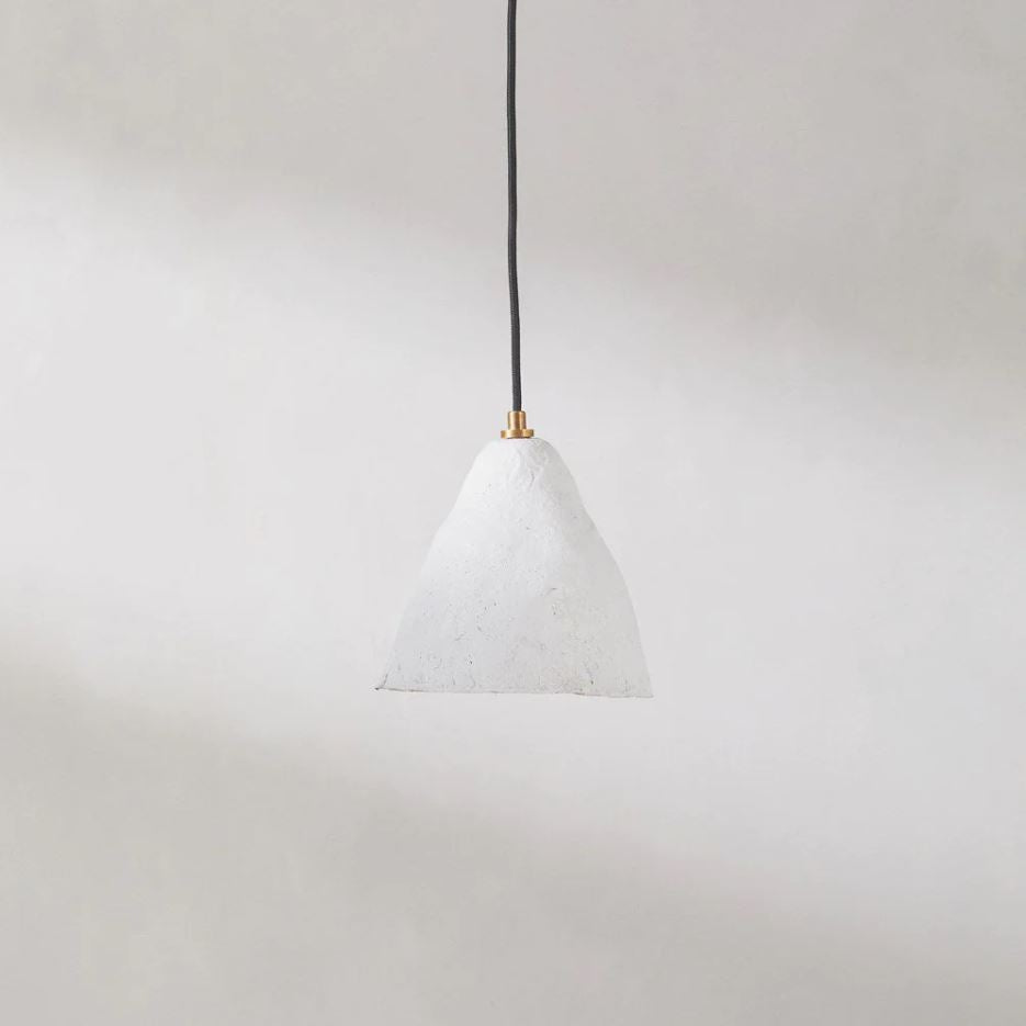 The Corsica Pendant features a cone-shaped design with a textured surface that creates its unique appearance. Crafted from paper mache, this light fixture has an irregular shape that adds a touch of character to the piece, making it stand out as a statement piece in any room. The Corsica Pendant light is perfect for those looking for a hanging light fixture that will complement any decor scheme. Its small and elegant shape makes it a versatile piece that can be used in a variety of settings, from bedroom pendant lighting to ambient hallway lighting solutions. Available in white and dusty pink.
