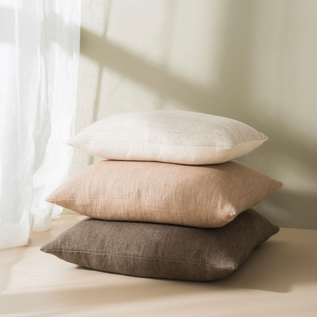 This heavyweight cushion cover is made with a beautiful blend of jute, linen and cotton. The natural fibres create an organic, heavily textured finish.