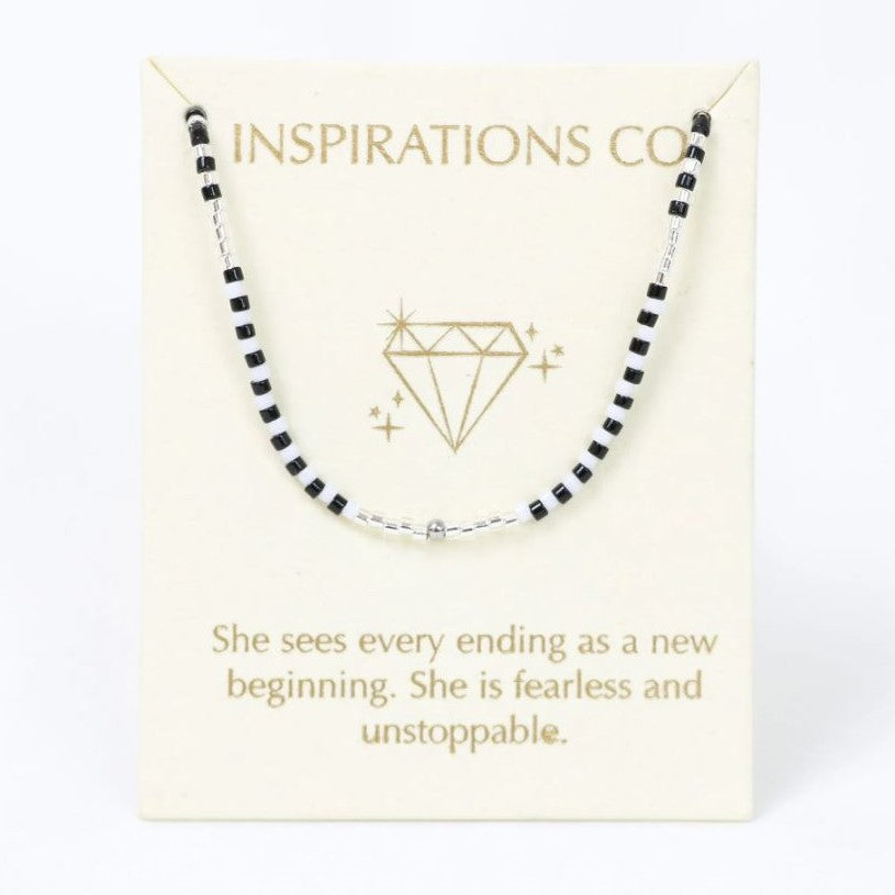 Made with Japanese glass beads and featuring a tarnish free Stainless Steel adjuster chain our Inspiration Necklaces come in an assortment of colours and designs.