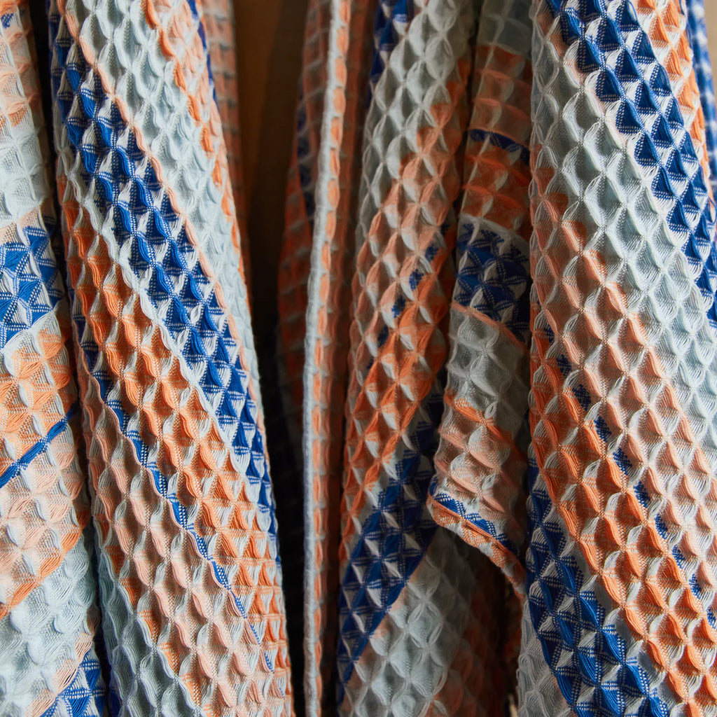 Note: After washing, while still damp, be sure to give our waffle towelling a good shake to help expand the weave that may have tightened up in the wash.