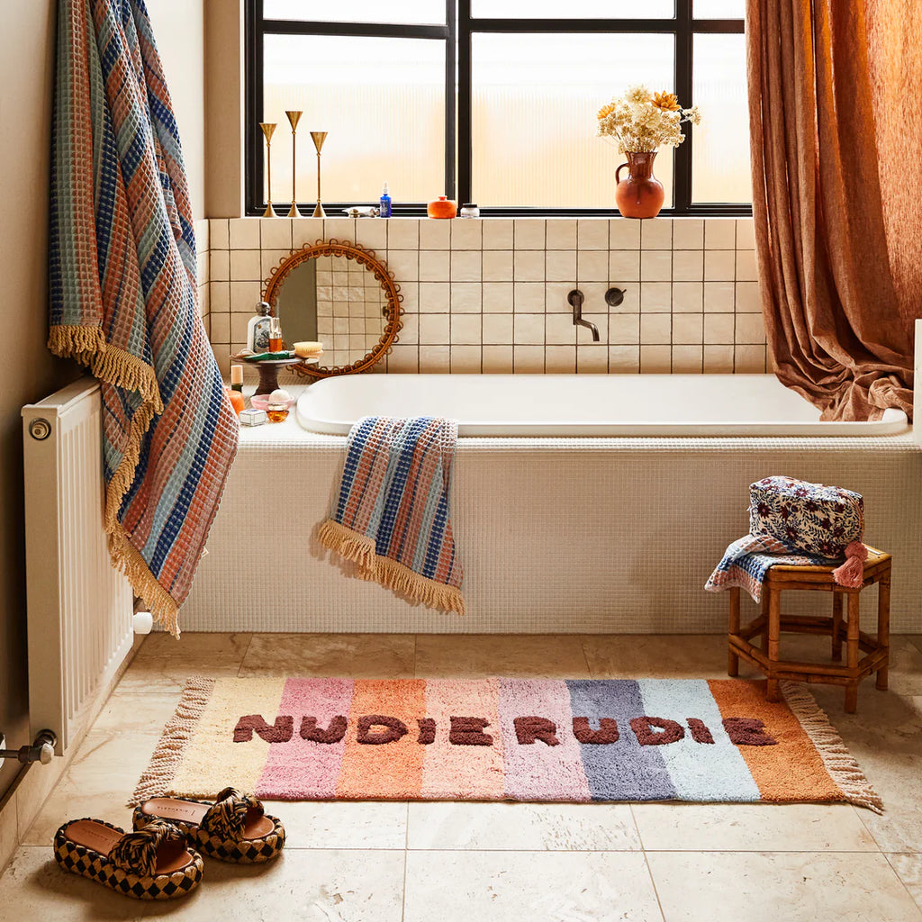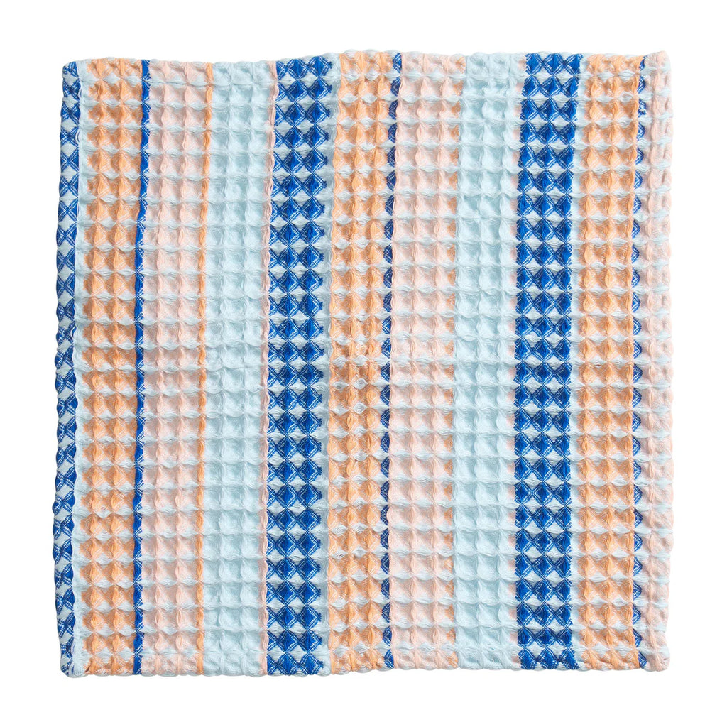 "Our Kanti face washer takes inspiration from spice tones and stunning shades of blue. The colours capture the moodiness of dusk nights and the soft pink hues of sunset in a nostalgic striped design". – Phoebe’s Style Notes