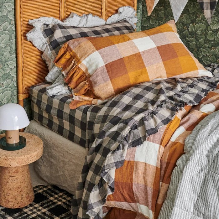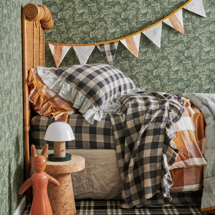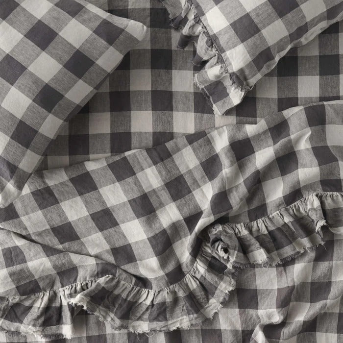 Licorice Gingham is charcoal and natural coloured linen