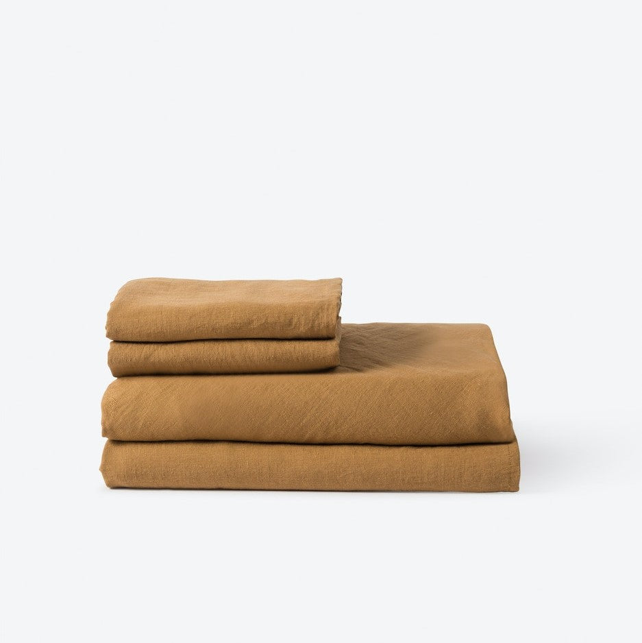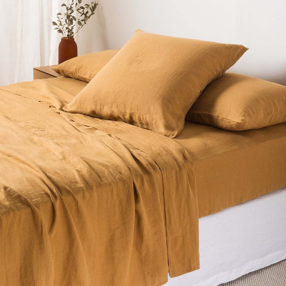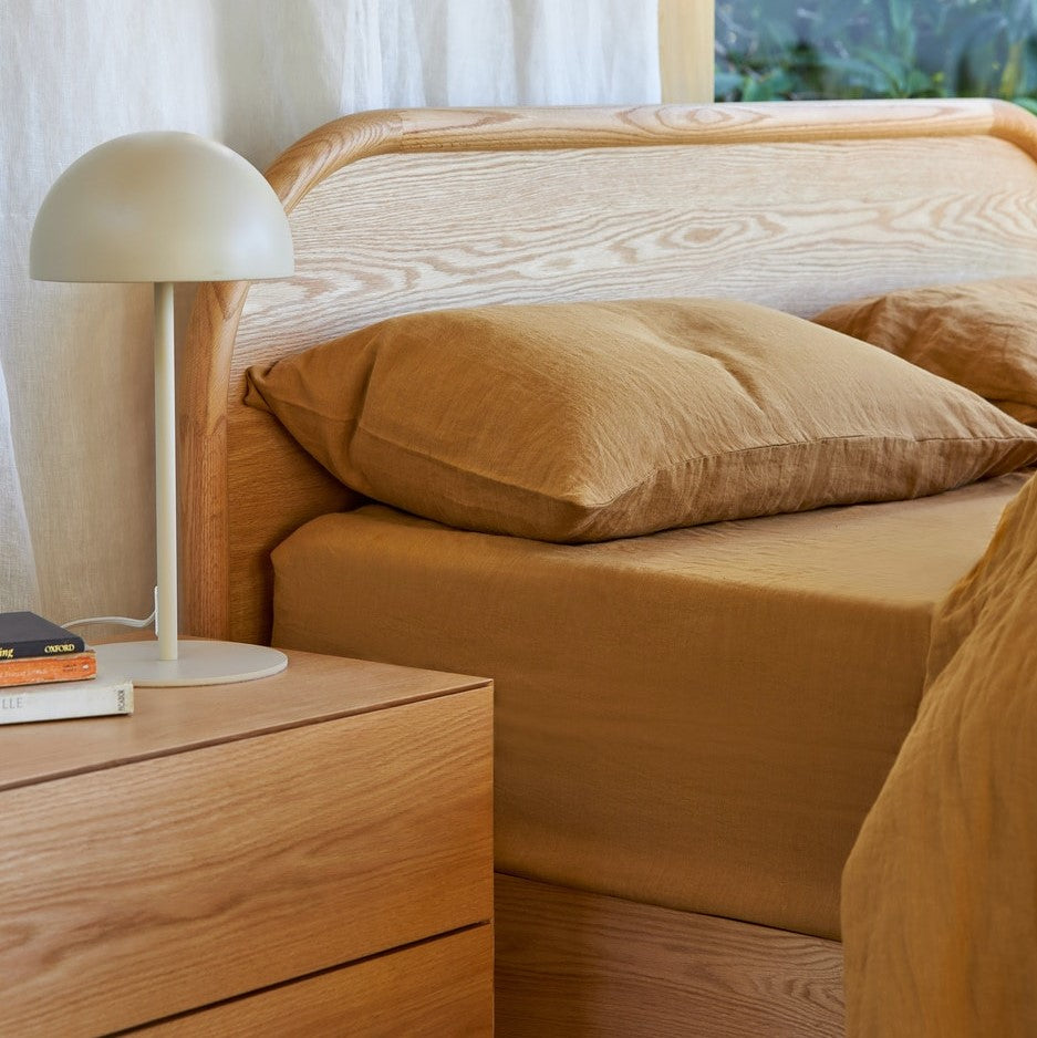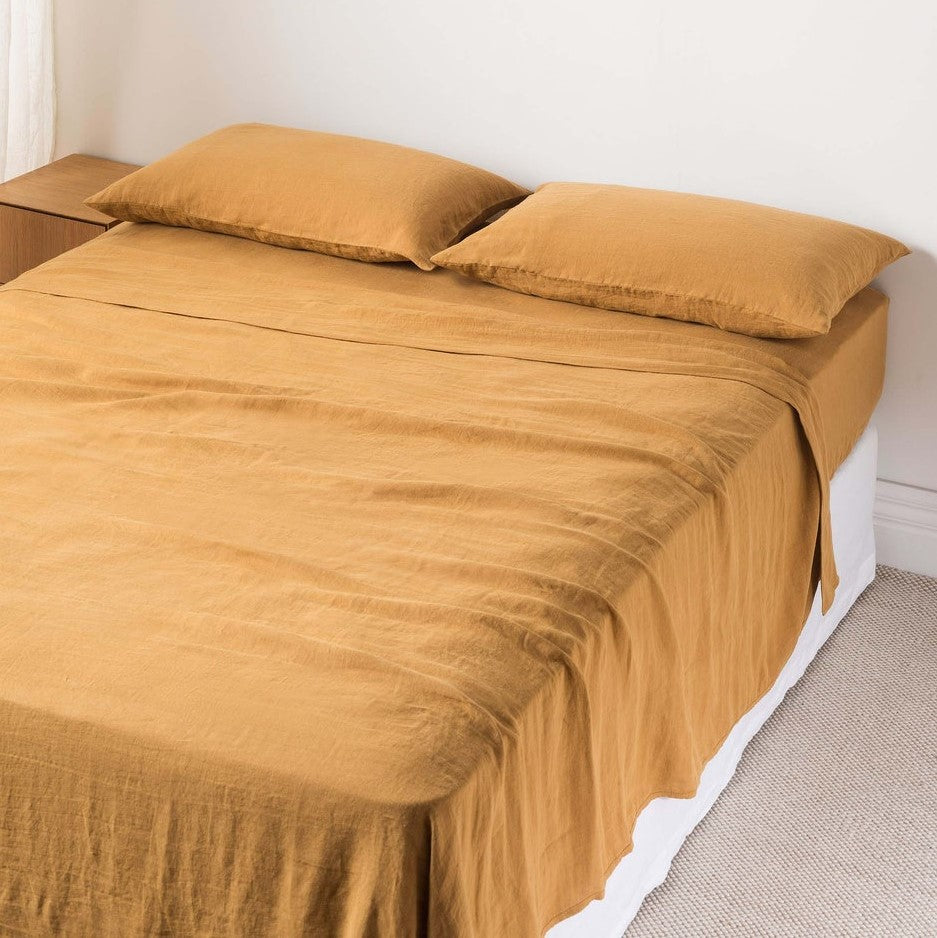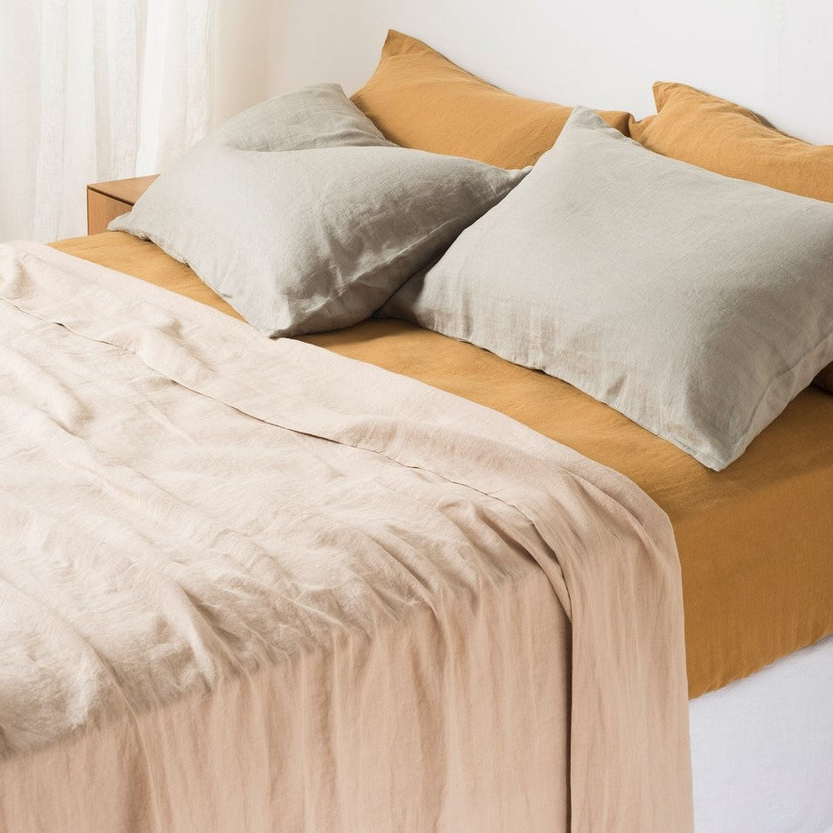 The Sove Linen Flat Sheet in miso is a beautiful addition to your bedroom.