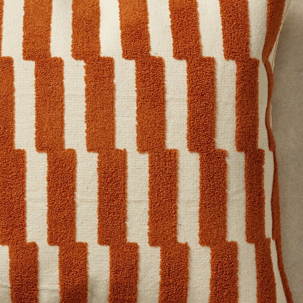 Theodore Cushion is a square decorative cushion distinguished by a captivating mid-scale pattern with undeniable graphic appeal. The standout feature is the vertical cascade motif, which accentuates the cushion's textural sophistication.