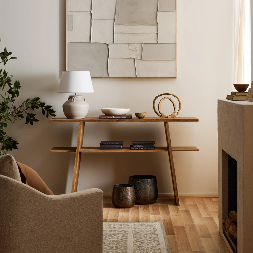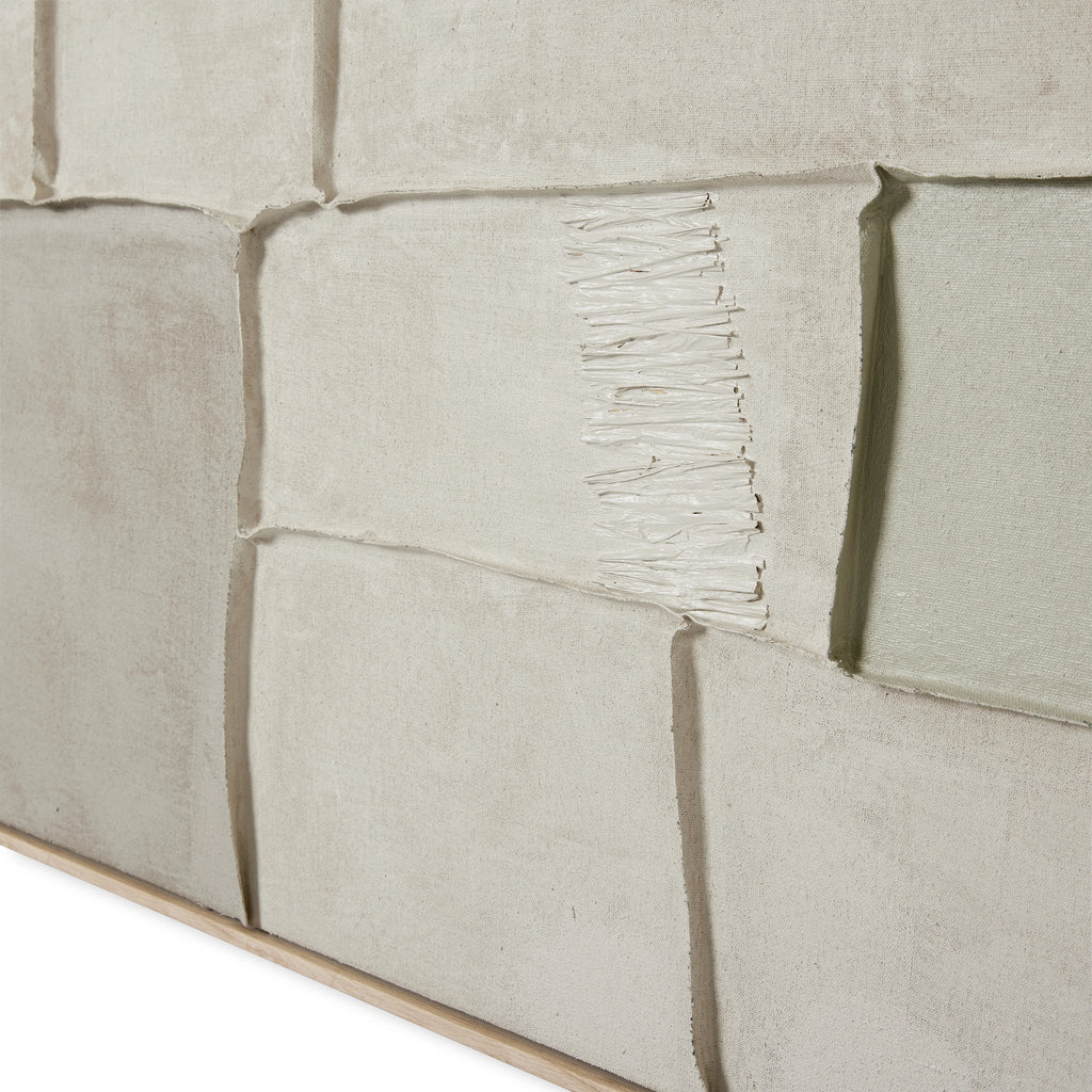 Dimensional textured hand-painted artwork in neutral shades.
