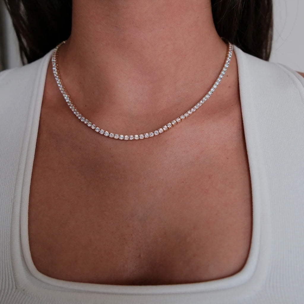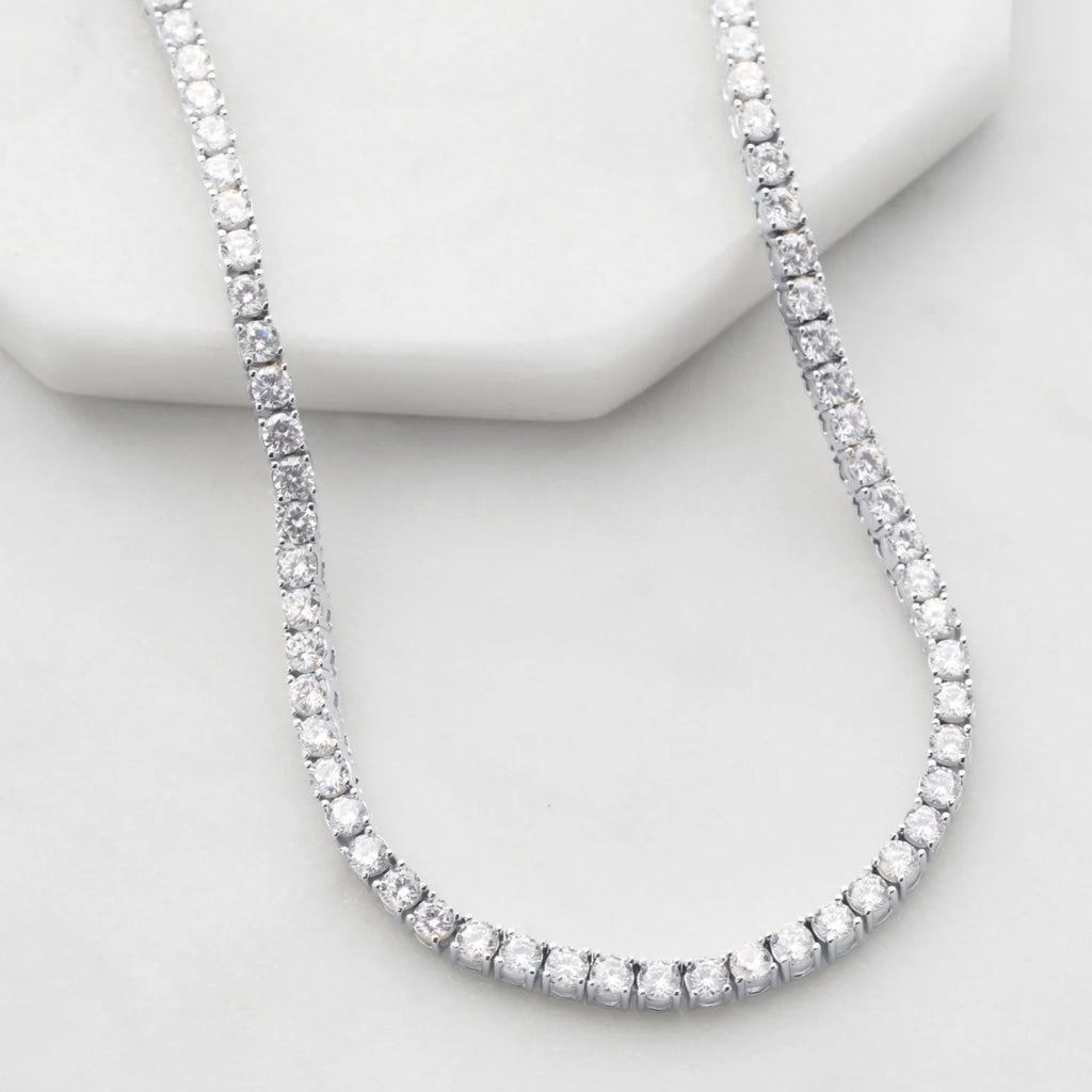 Dani Tennis Necklace– A timeless classic with a modern twist, the Dani Tennis Necklace features a row of sparkling crystals designed to sit flat and stay in place. Crafted to elevate your everyday look or add the perfect finishing touch to any occasion.